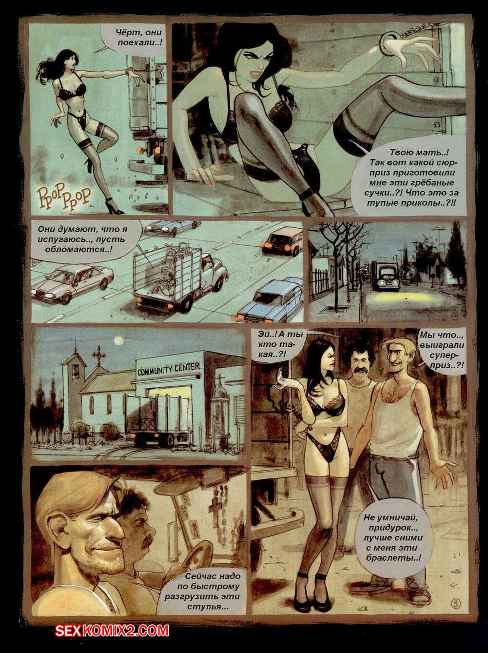 Порно комикс Девичник Девушки решили устроить своей горячей подруге брюнетке сюрприз. Она встретилась с двумя парнями и они стали ласкать ее пизденку, после чего сучка у них отсосала и дала им себя выебать в пизду и задницу.