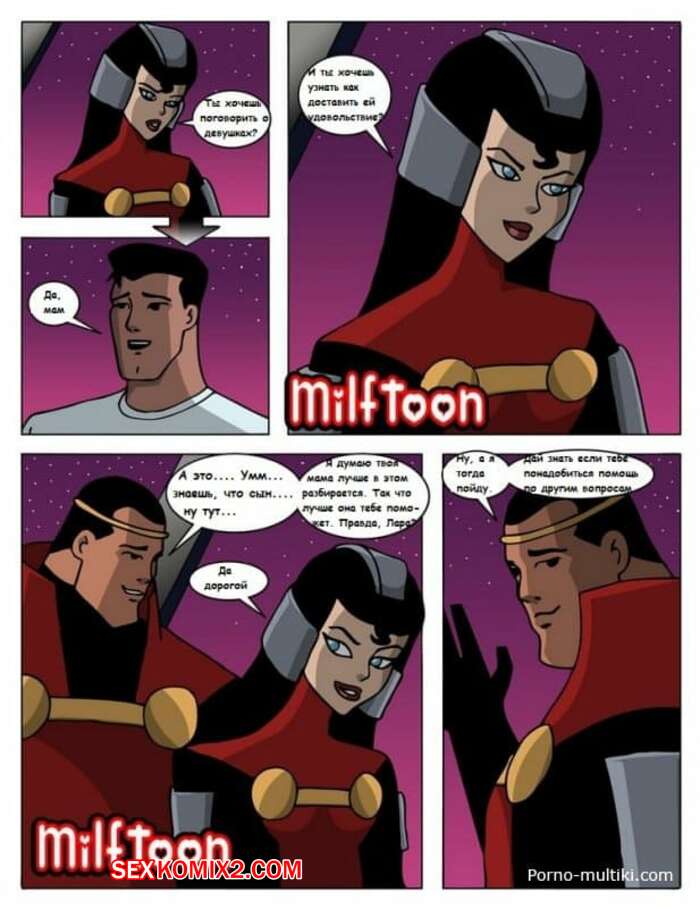 Порно комикс Безопасный секс. Safe sex. Milftoon Сисястая милфа брюнетка решила научить своего молодого сына сексу. Она разделась перед ним и стала сосать его большой хуй, после чего раздвинула ножки, чтобы он ее хорошенько выебал.