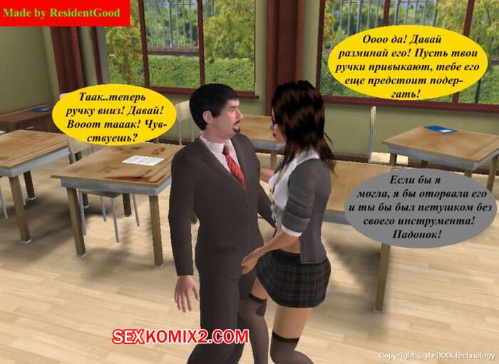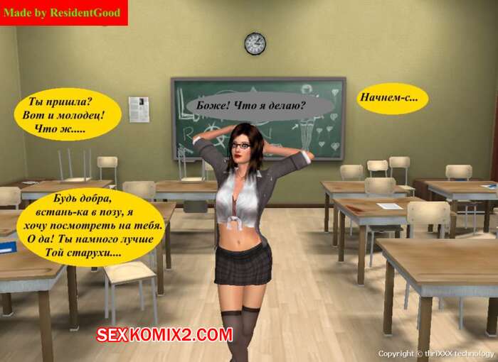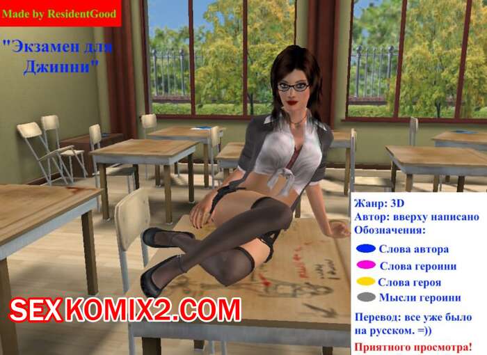 Порно комикс Экзамен для Джинни Горячая красотка брюнетка пришла на экзамен и препод предложил ей стопроцентый способ сдать. Сучка встала на колени и стала сосать его большой хуй, после чего дала ему себя выебать.