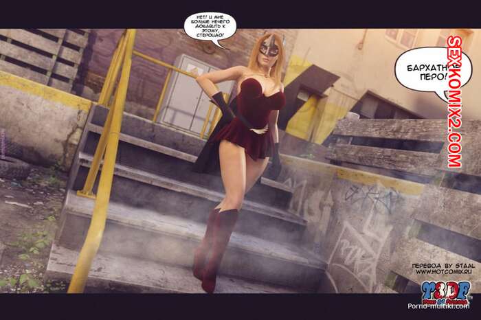 Порно комикс Бархатное перо Горячая сисястая блондинка явлется супергероиней и занимается борьбой со злодеями. Когда она вернулась домой, она разделась перед своим мужем и дала ему себя хорошенько выебать.