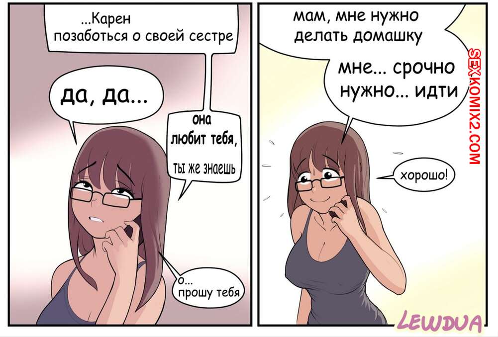 Порно комикс Lewdua. Карен и Наташа Две горячие сисястые брюнетки живут вместе и у одной из них есть большой хуй. Красотки возбуждаются, поэтому доставляют друг другу удовольствие ротиком, после чего ебутся.