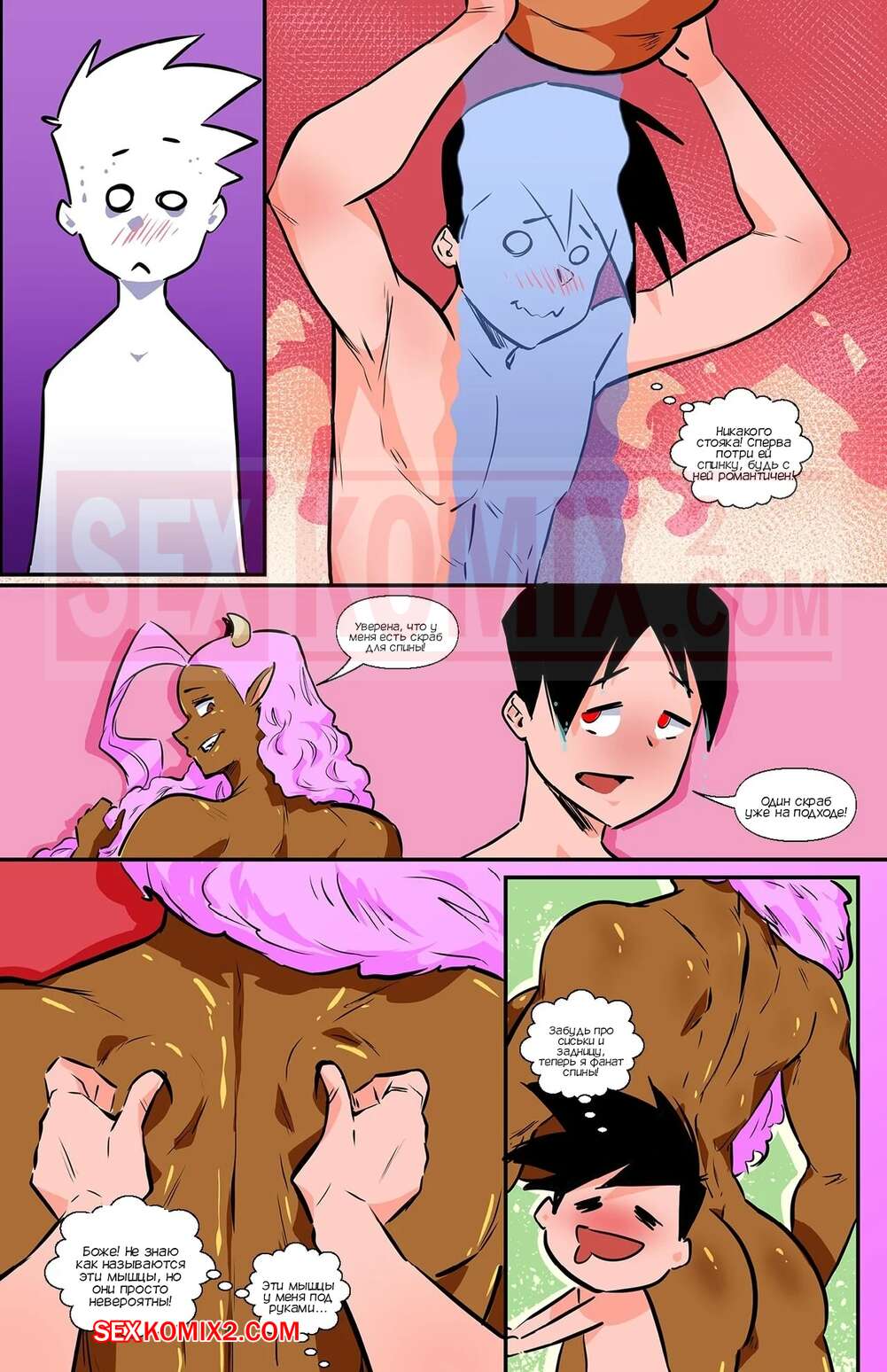 Порно комикс Академия девушек монстров. Часть 13. Monster Girl Academy. Worky Zark Парень пришел в гости к своей подруге минотавру и она позвала его принять душ вместе. Красотка стала мыть парня и помогла ему кончить, после чего дала ему отлизать свою пизденку.