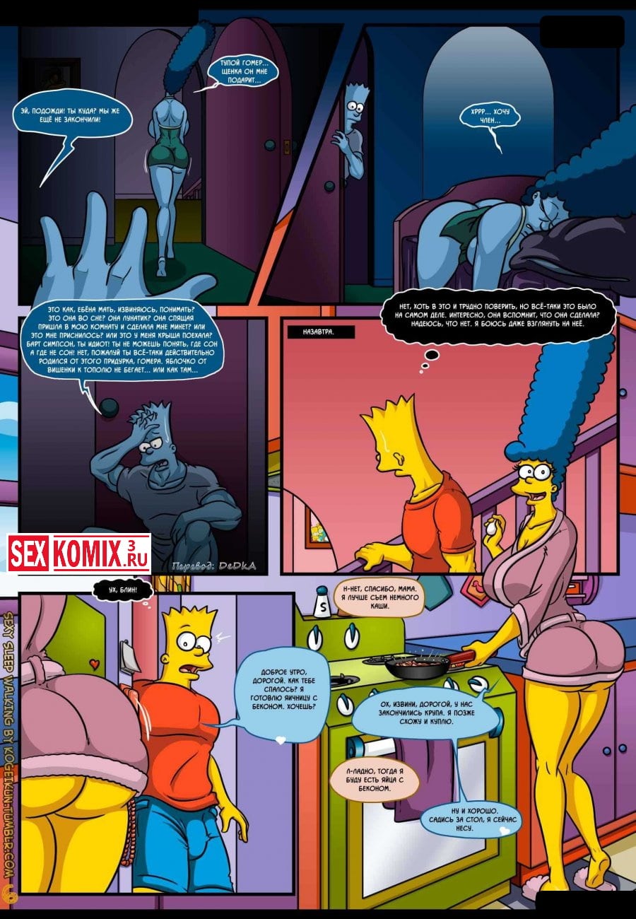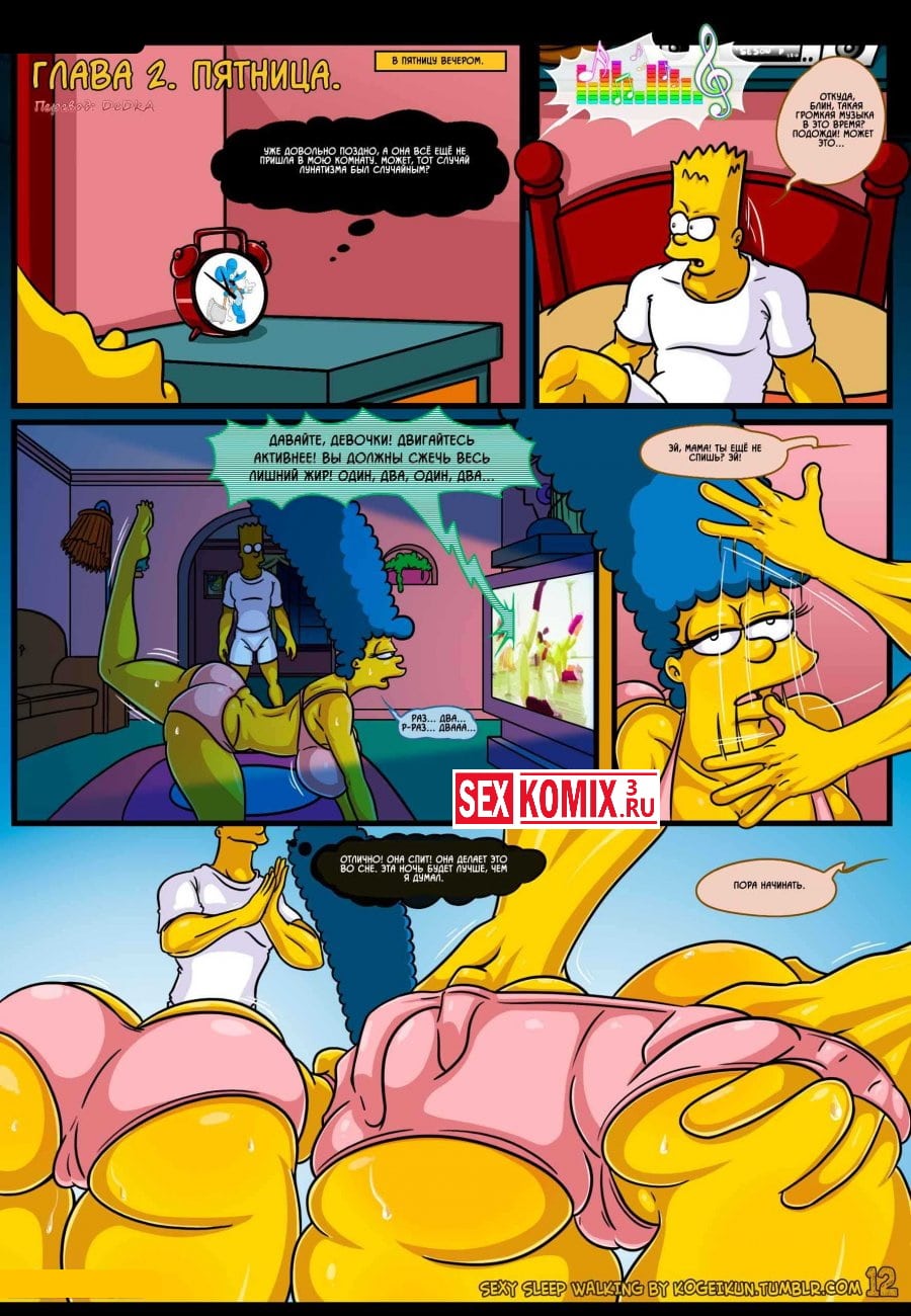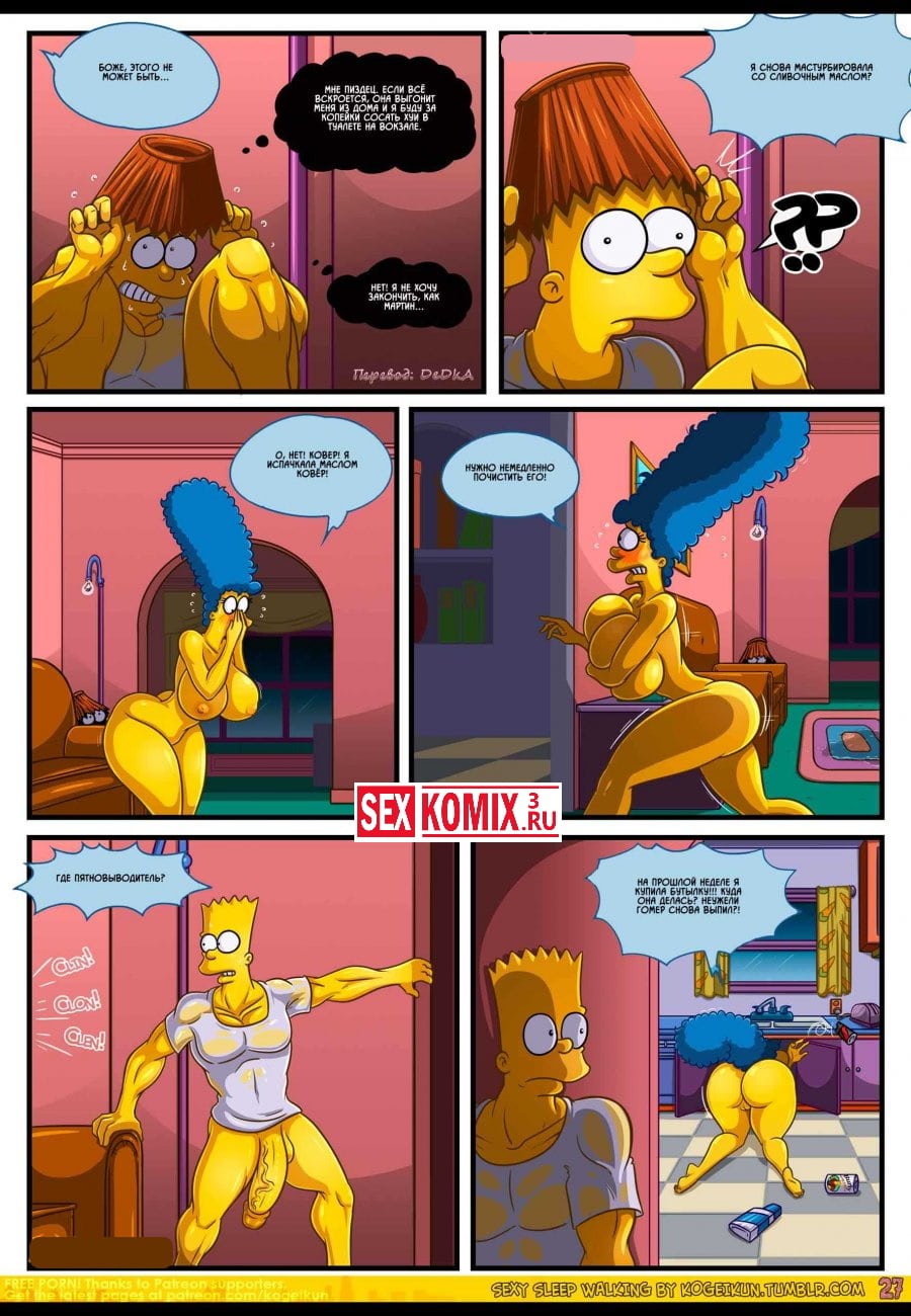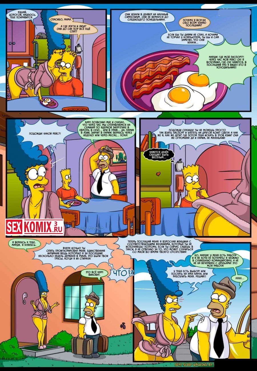 Смотреть порно комикс Симпсоны для взрослых «Сексуальные прогулки во сне». Все начинается с того, что Гомера отправляют в командировку и Мардж остается дома без своего любимого супруга. После долгого воздержания она начинает ходить во сне и просить секса, этим с удовольствием пользуется парень.