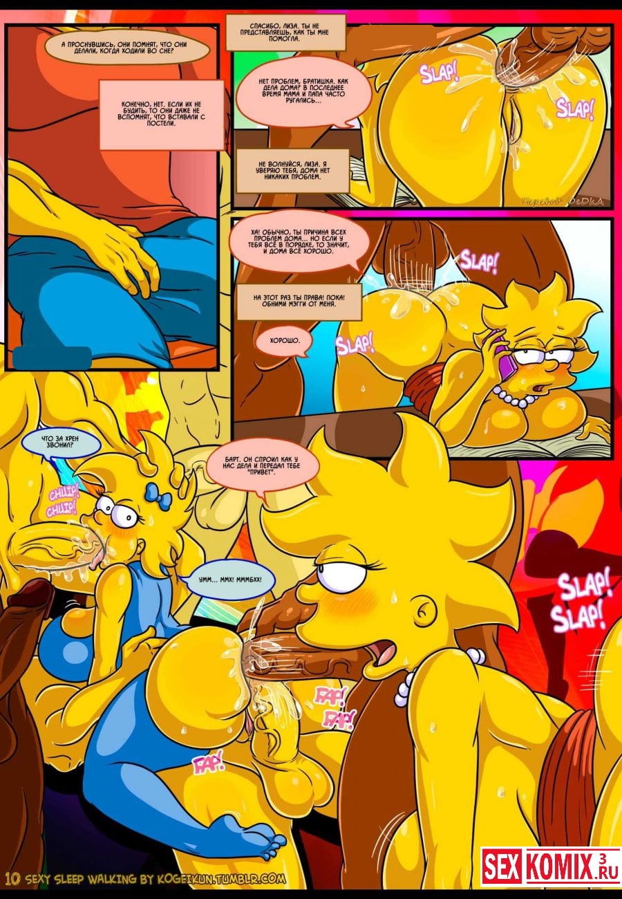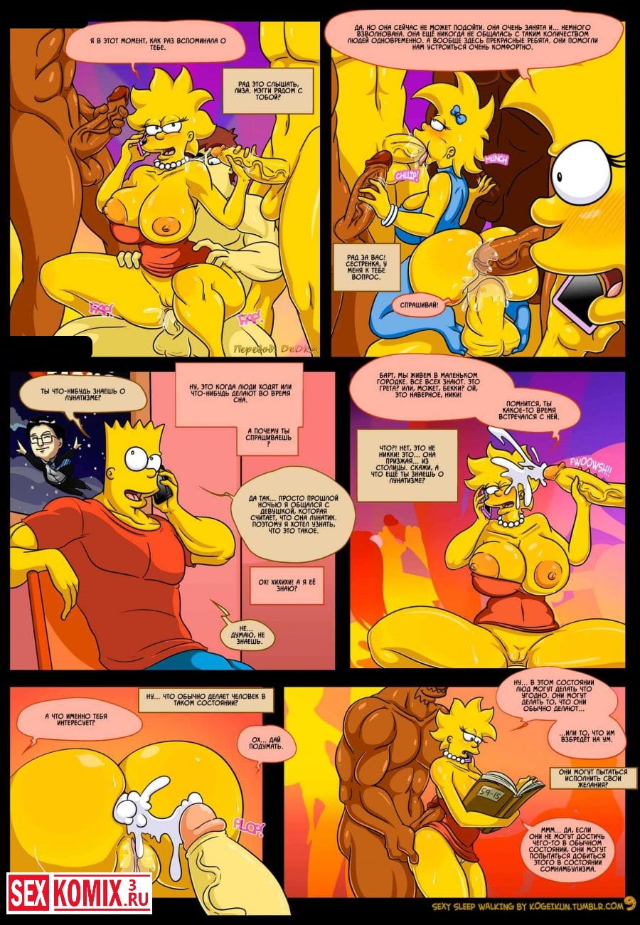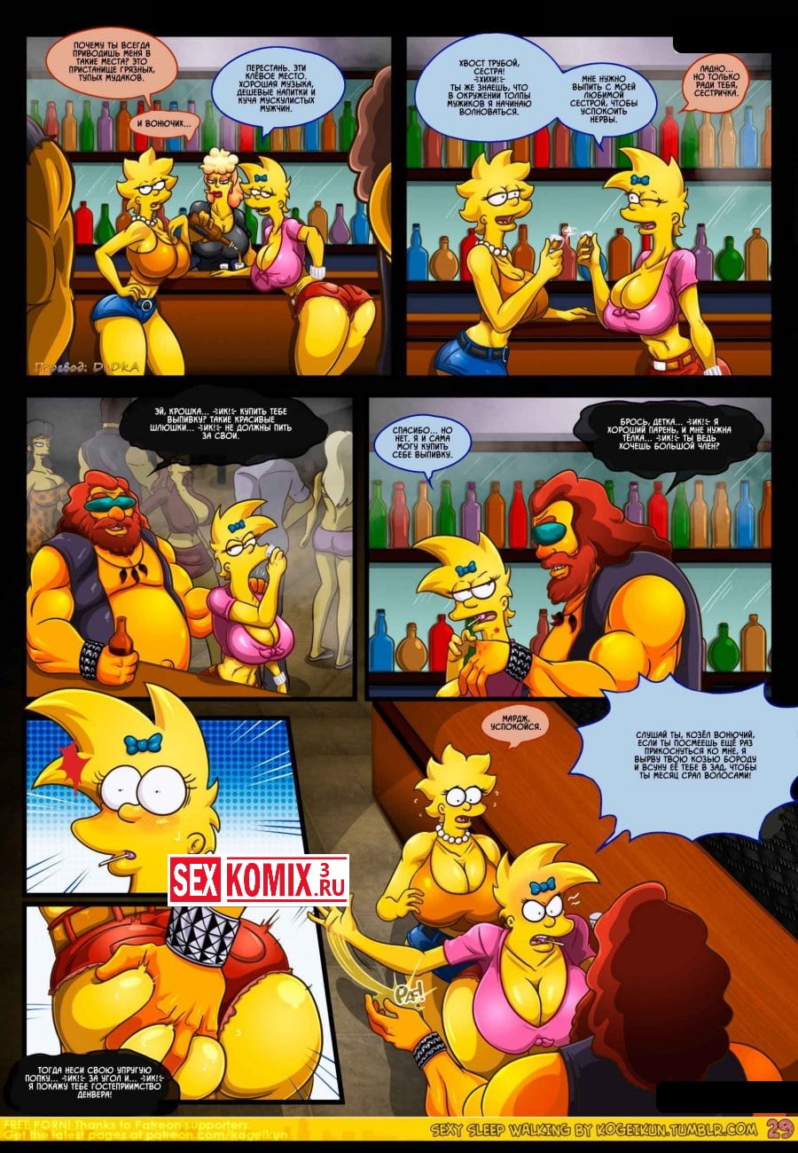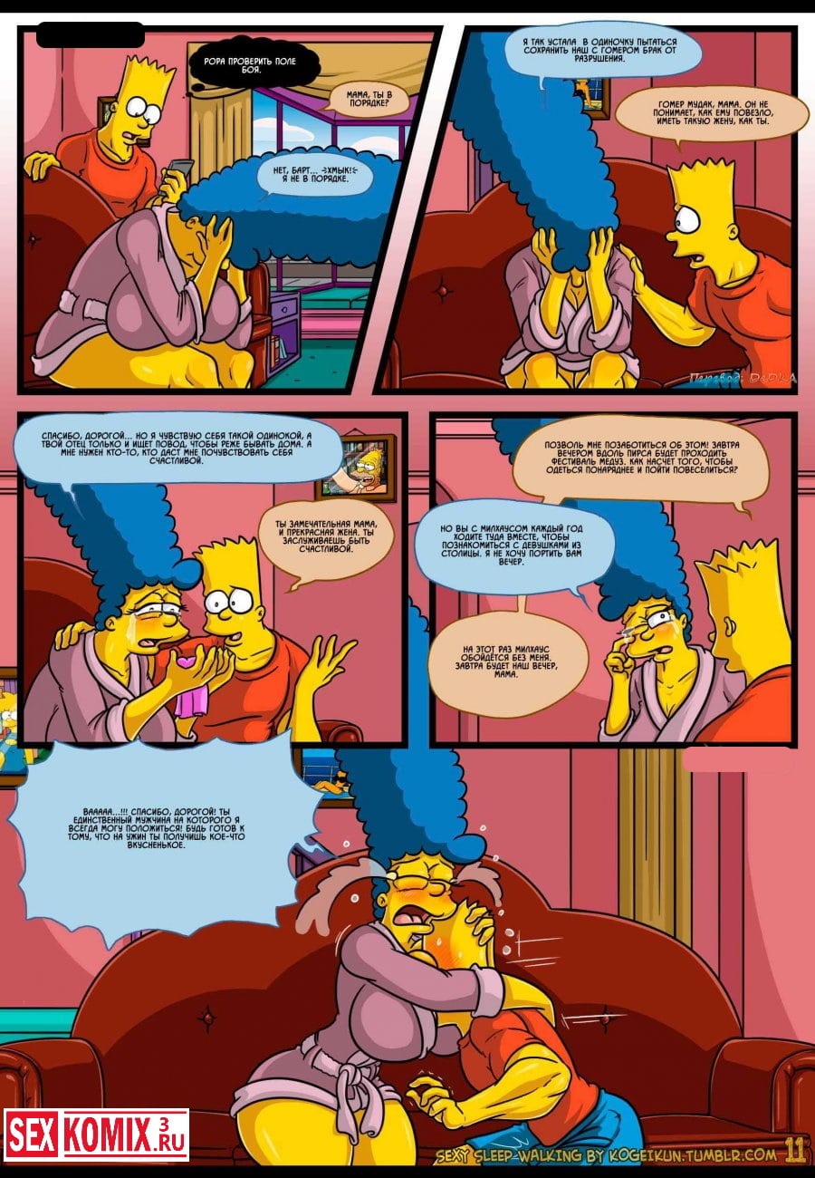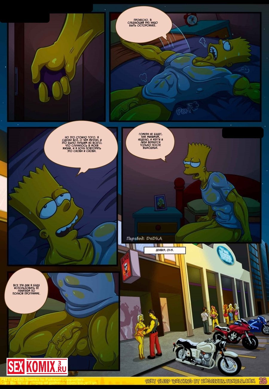 Смотреть порно комикс Симпсоны для взрослых «Сексуальные прогулки во сне». Все начинается с того, что Гомера отправляют в командировку и Мардж остается дома без своего любимого супруга. После долгого воздержания она начинает ходить во сне и просить секса, этим с удовольствием пользуется парень.