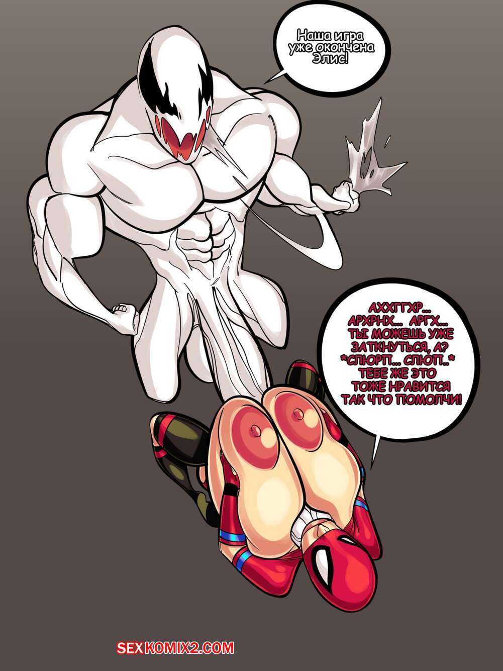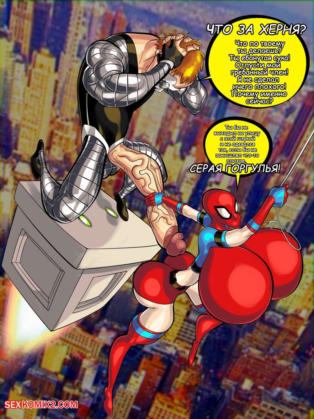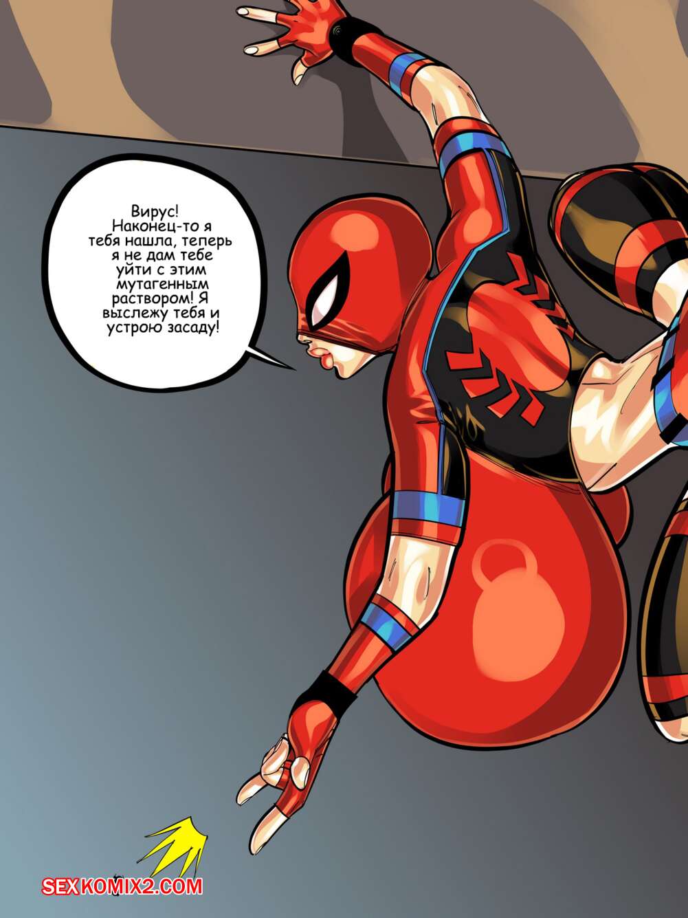 Порно комикс Паучиха. Spider Bimbo. Croquant Горячая сисястая красотка супергерой встретилась со злодеем вирусом, у которого огромный хуй. Она хочет остановить его во что бы то ни стало, поэтому стала сосать его хуй.