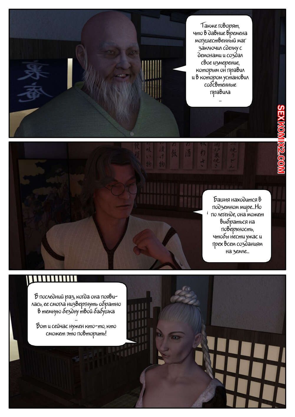 Порно комикс Башня греха. Yoru No Majin. The Tower of Sin Горячие сисястые красотки подвегаются нападению монстров, желающих насладиться их шикарными телами. Они раздевают сучек и дают им отсосать свои большие хуи, после чего хорошенько их трахают.