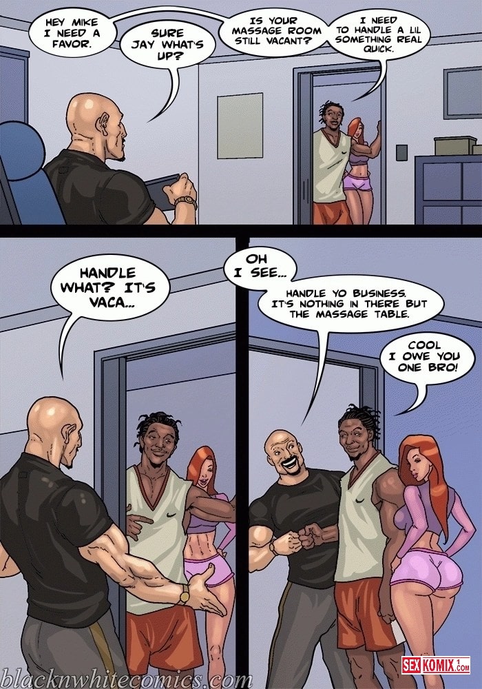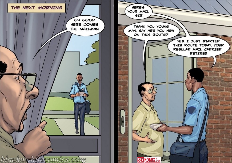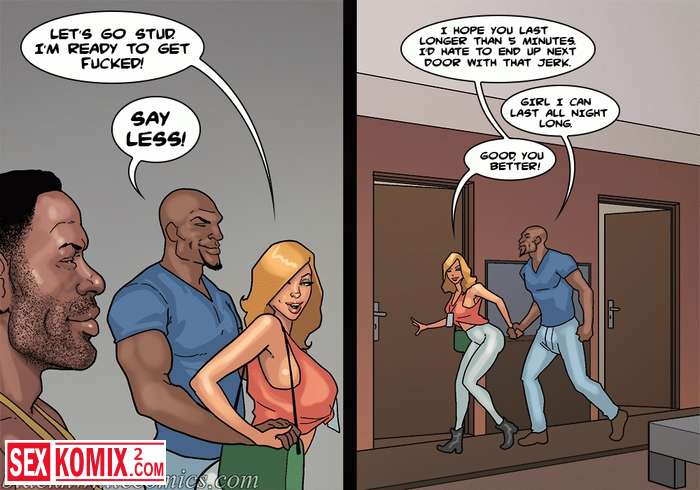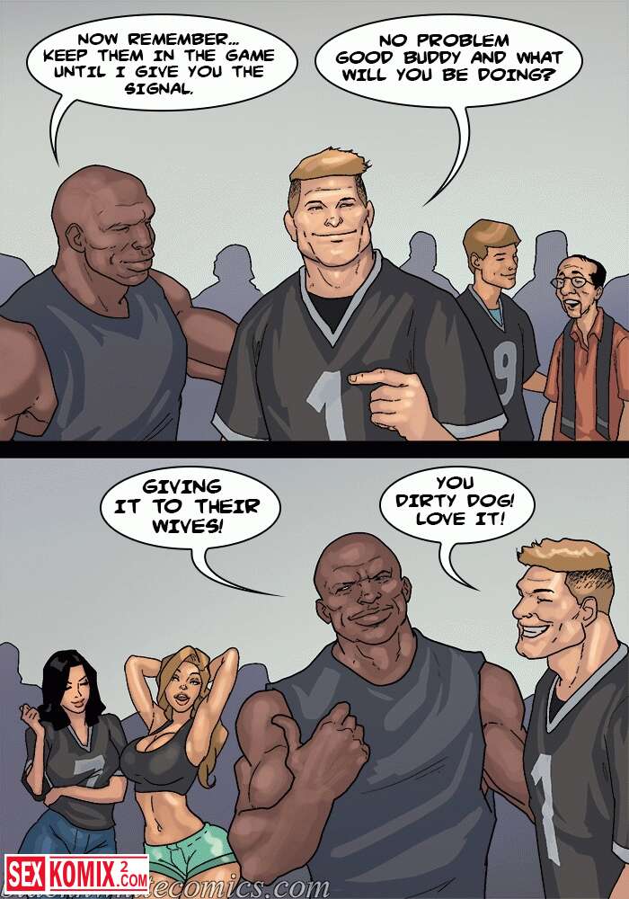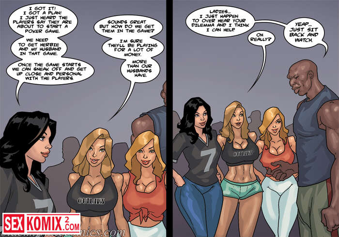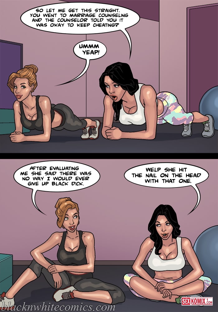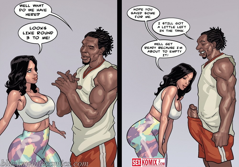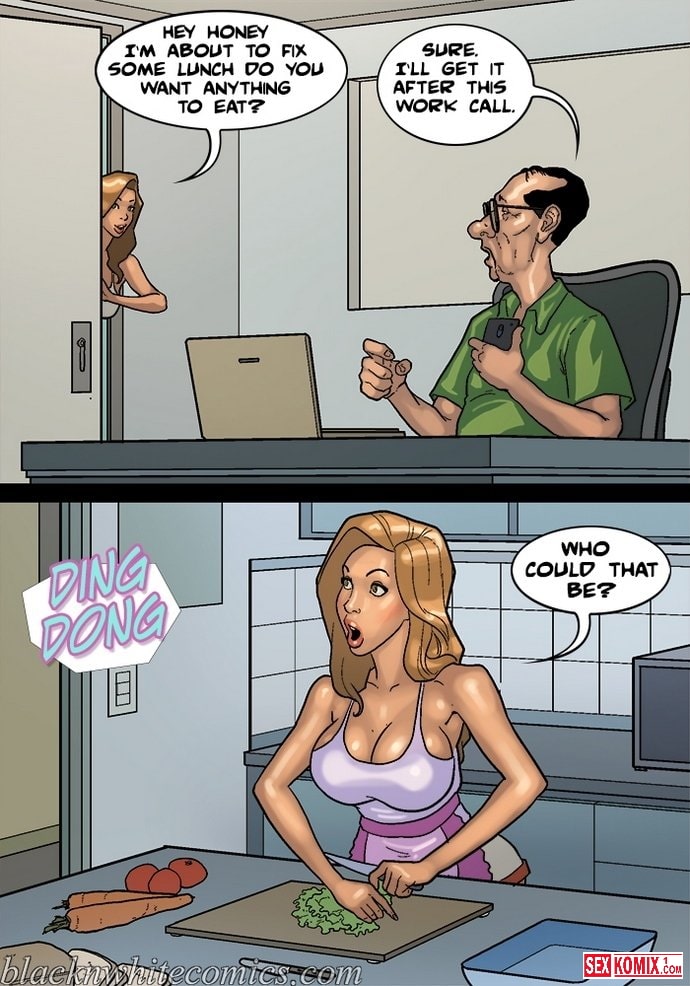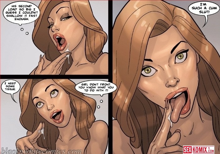 Обновлен. Порно комикс Игра в покер. Часть 3. Фулл хаус. Английский. Блондинка вошла во вкус, она уже не может без черных членов. Даже во снах ей снится как она изменяет своему мужу пока он лежит рядом. Утром чернокожий парень принес почту, и его красотка затащила в гараж и отсосал его огромный черный хуй. Муж чуть не застал их, но жена на этом не остановилась и всё-таки довела почтальона до оргазма и выпила всю его сперму.