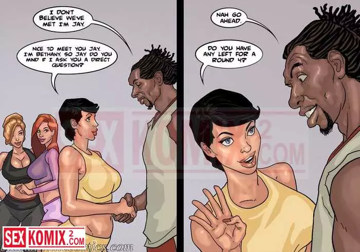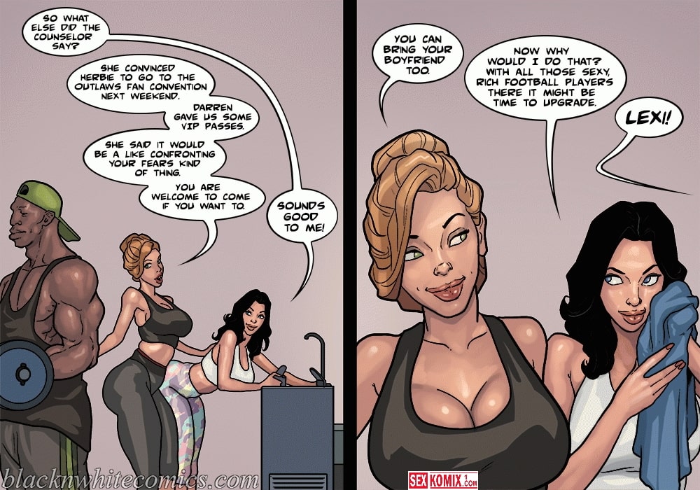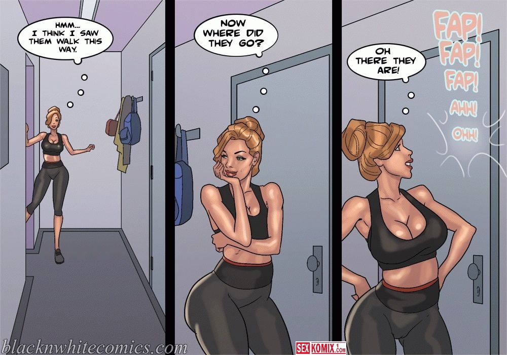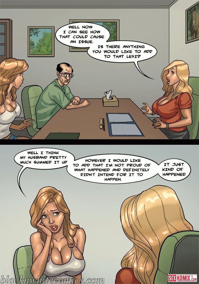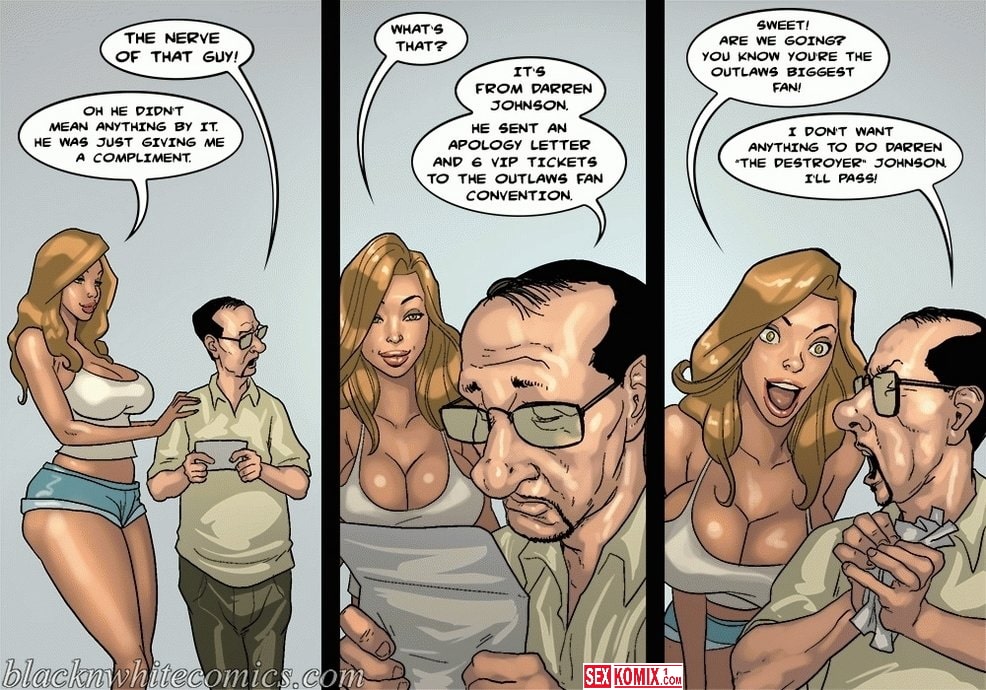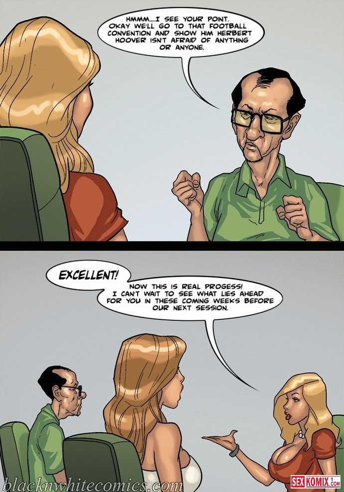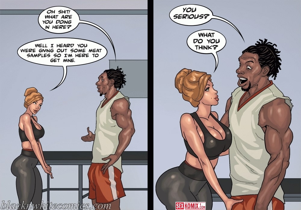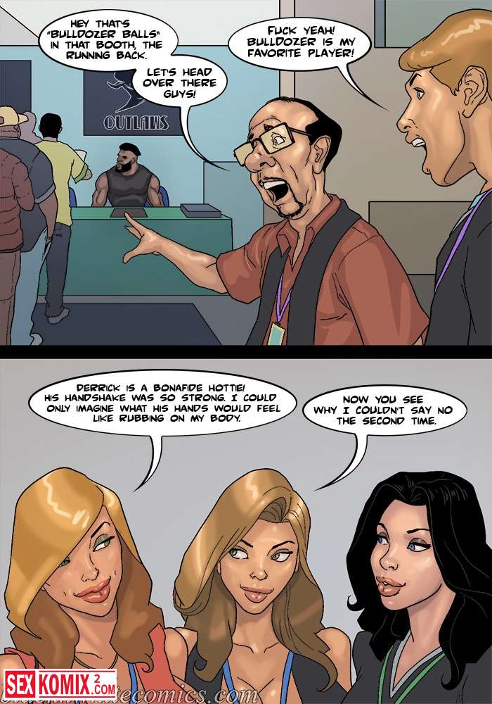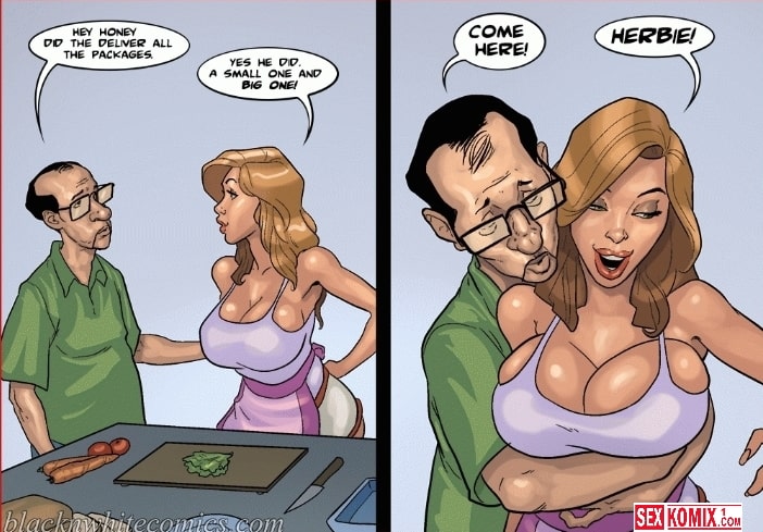 Обновлен. Порно комикс Игра в покер. Часть 3. Фулл хаус. Английский. Блондинка вошла во вкус, она уже не может без черных членов. Даже во снах ей снится как она изменяет своему мужу пока он лежит рядом. Утром чернокожий парень принес почту, и его красотка затащила в гараж и отсосал его огромный черный хуй. Муж чуть не застал их, но жена на этом не остановилась и всё-таки довела почтальона до оргазма и выпила всю его сперму.