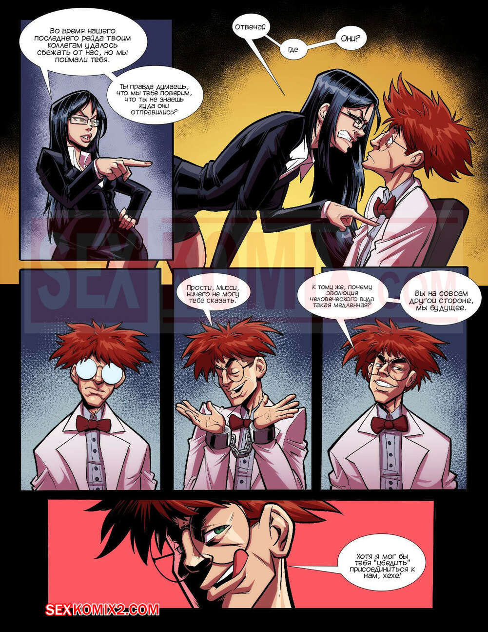 Порно комикс Допрос. Eyline Interrogation Fontez Горячая сисястая брюнетка проводила допрос парня ученого и грубо с ним обошлась. Он превратился в накаченного парня и решил наказать сучку, хорошенько выебав ее своим большим хуем.