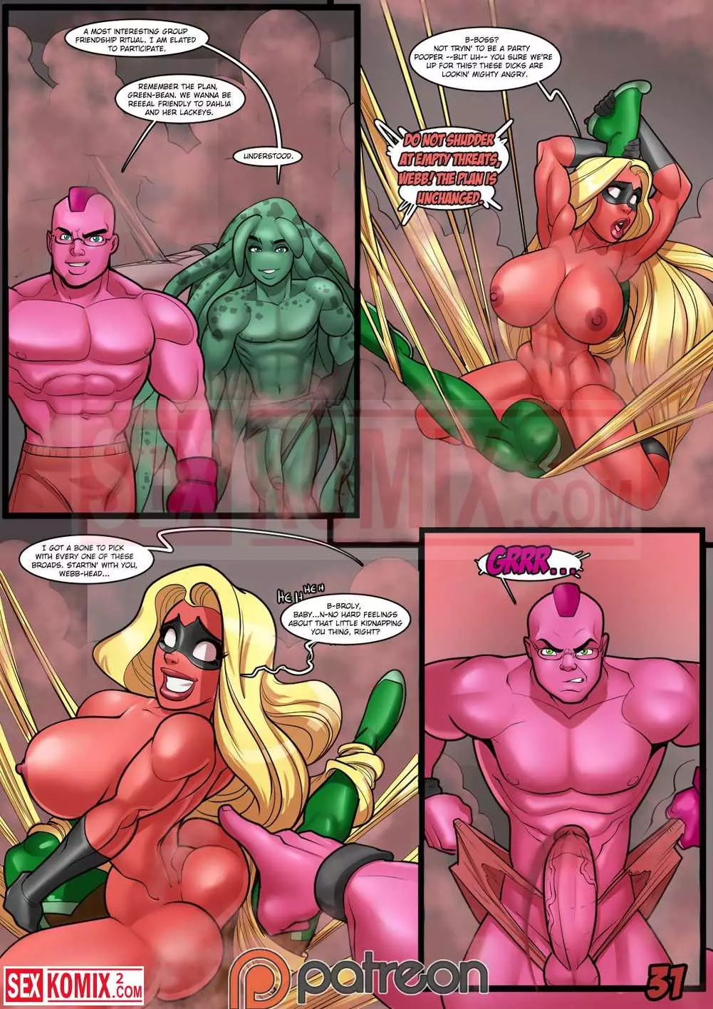 Порно комикс Оттенки зла. Английский. Полюбившиеся вам персонажи снова на тропе войны. В этот раз все упирается в секс, девушки разделились и решили проверить парней героев. Так как они заподозрили в их действиях, что-то странное. Для разоблачения красотки применили искусство обольщения и каждая уложила в пастель свою цель и хорошенько трахнула.