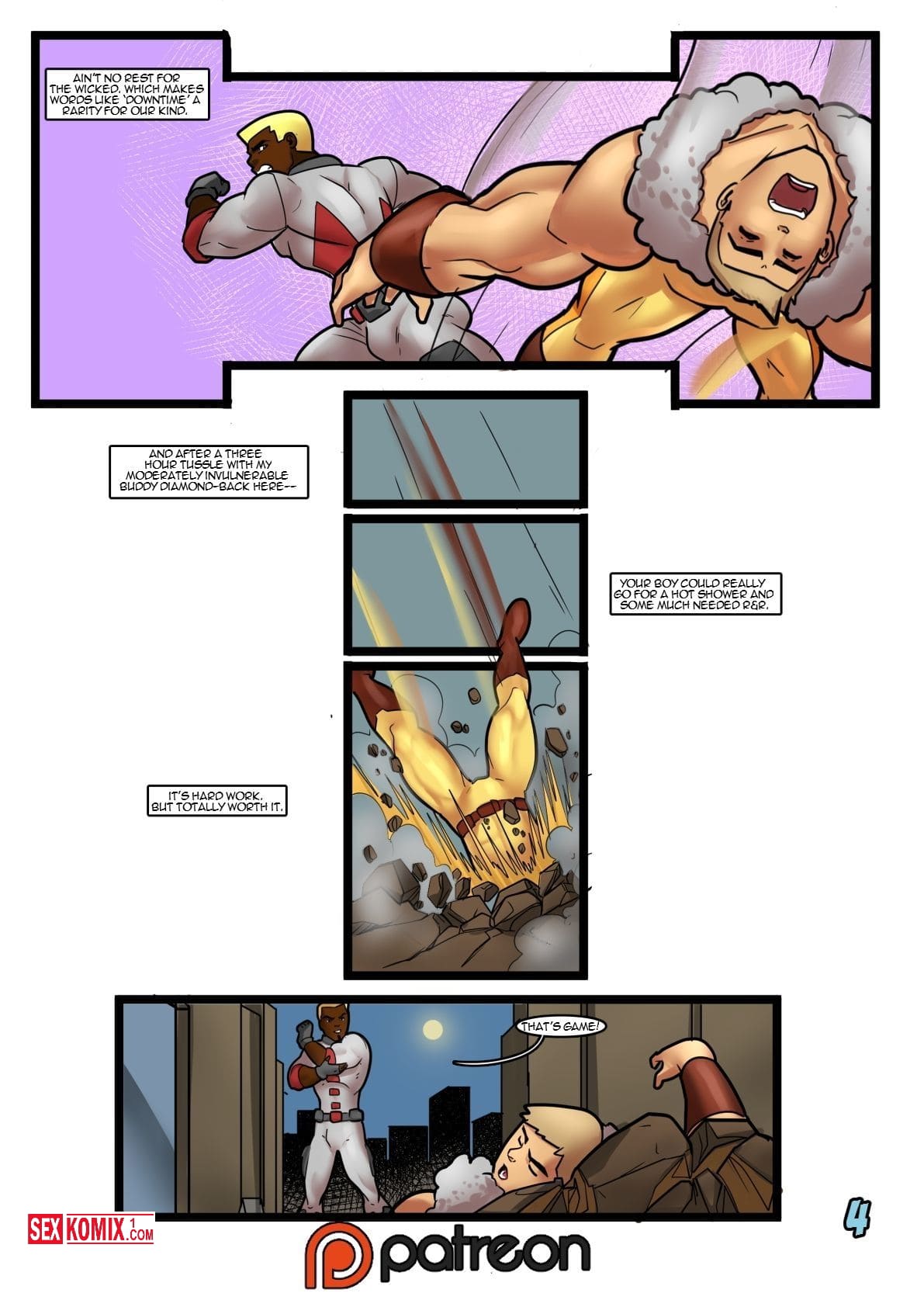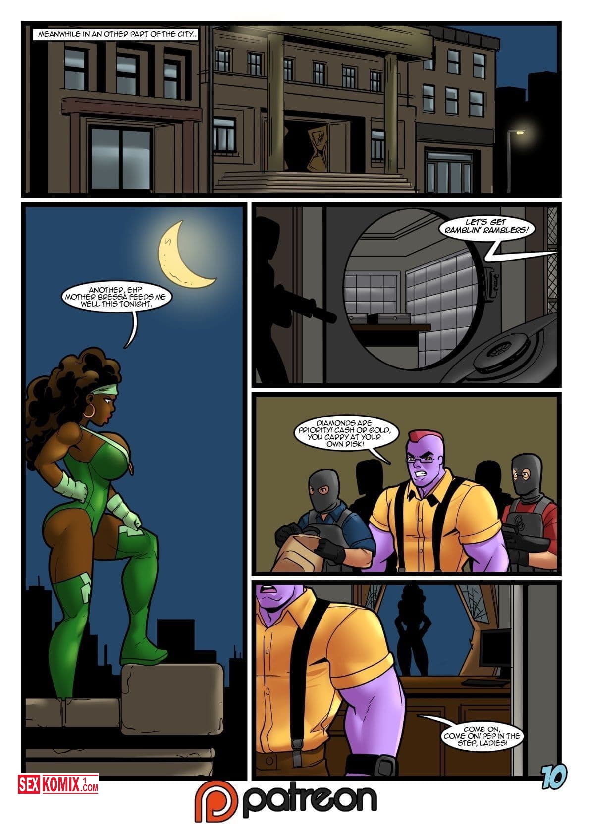 Порно комикс Арктическая жара. Английский. Женщина невидимка проникла в дом чернокожего супергероя. Она стала видимой и начала раздеваться перед ним, девушка возбудилась, когда увидела его последний подвиг и решила его отблагодарить. Парень с радостью принял её благодарность и трахнул белую сучку.