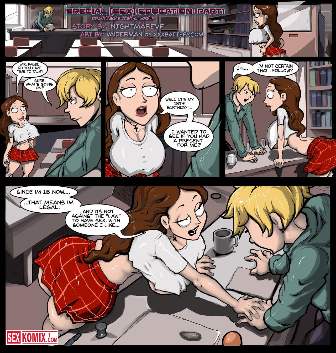 Порно комикс Рик и Морти. Половое воспитание. Английский. Парень со своим дедом снова ищут приключения на свои задницы. Они узнали, один знакомый Морти не тот за кого себя выдает. Он прибыл на Землю, чтобы оплодотворять девушек. В это время он соблазнил красотку и трахал её в аудитории, но наши герои ему помешали.