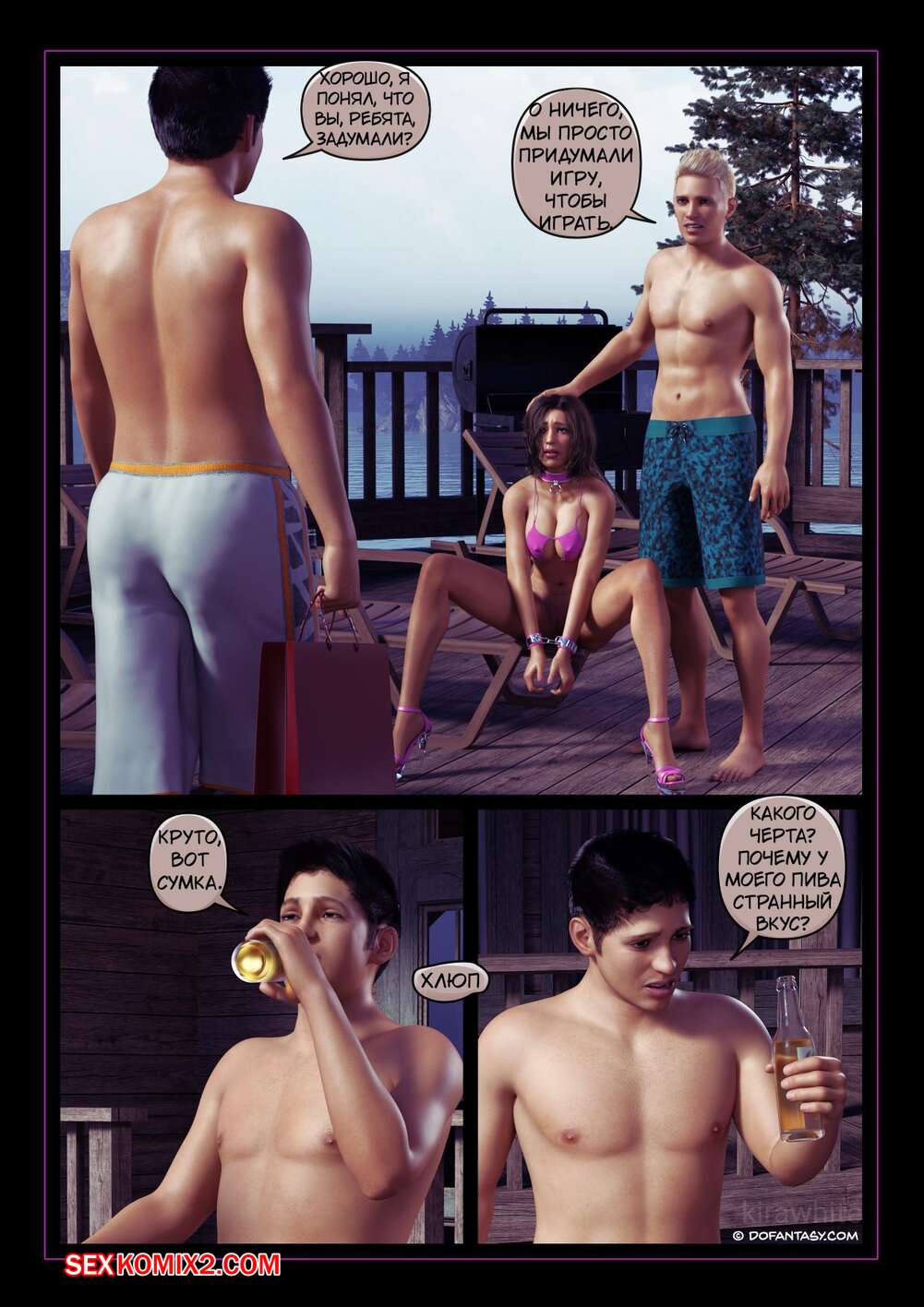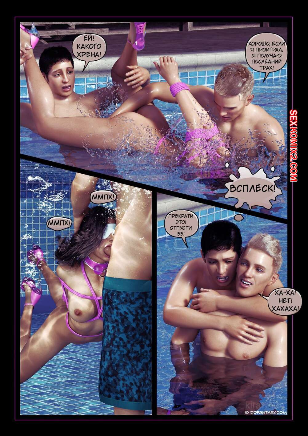 Порно комикс Летние каникулы Кайлы. Часть 4. Kayla Summer Break Парни продолжают пользоваться горячей сисястой брюнеткой как только захотят. Они раздевают ее и дают ей отсосать свои большие хуи, после чего хорошенько ее выебали.