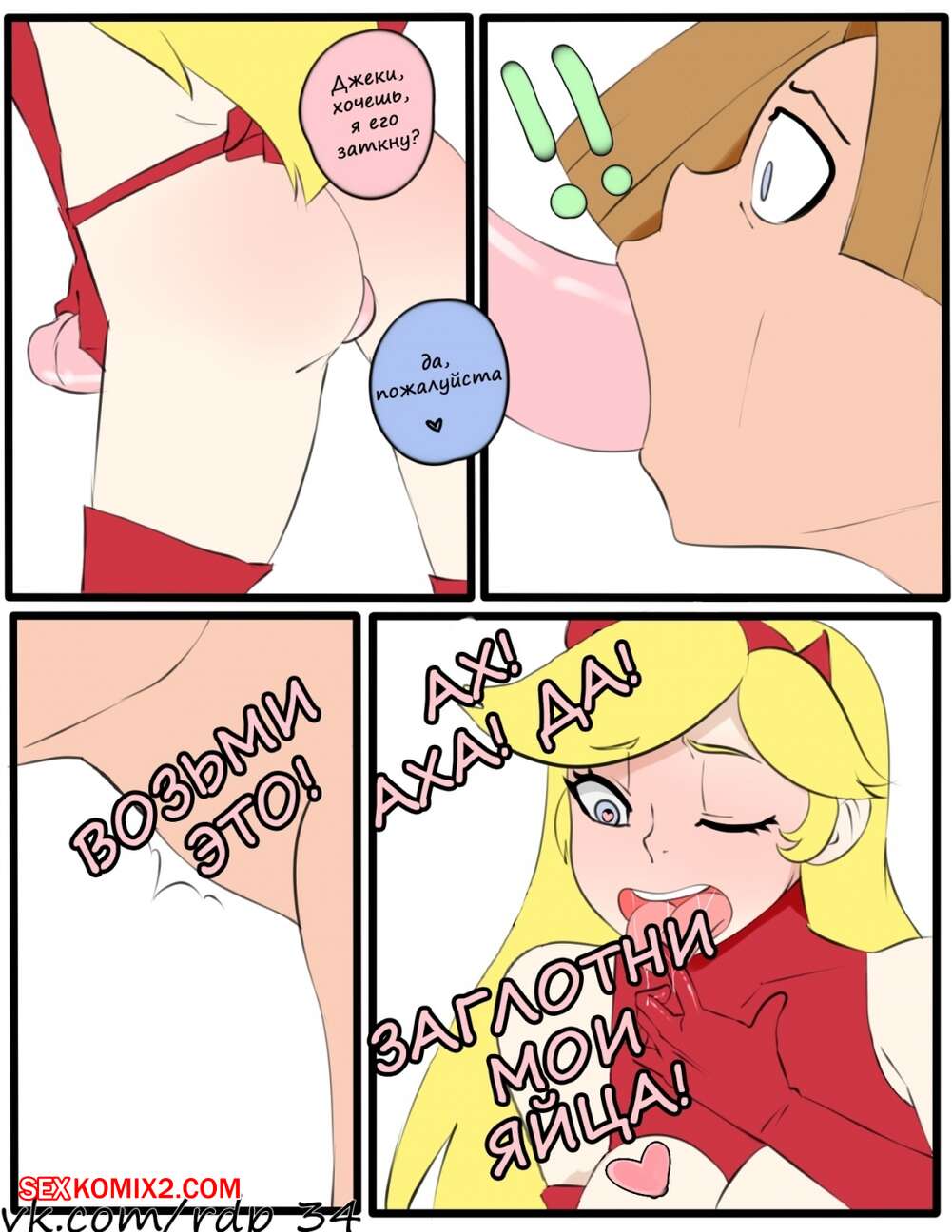 Порно комикс Стар против. Время расплаты. Стар против Сил Зла Горячая сисястая блондинка была очень возбуждена и решила повеселиться со своим дружком. Она разделась перед ним и дала ему себя трахнуть, после чего сама выебала ее страпоном.