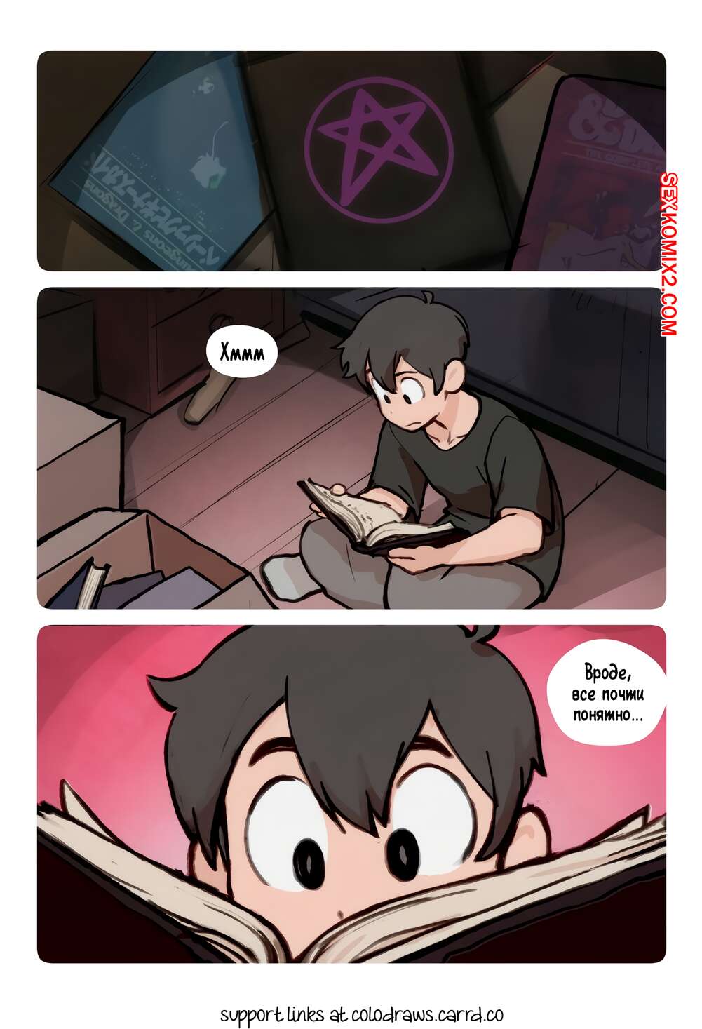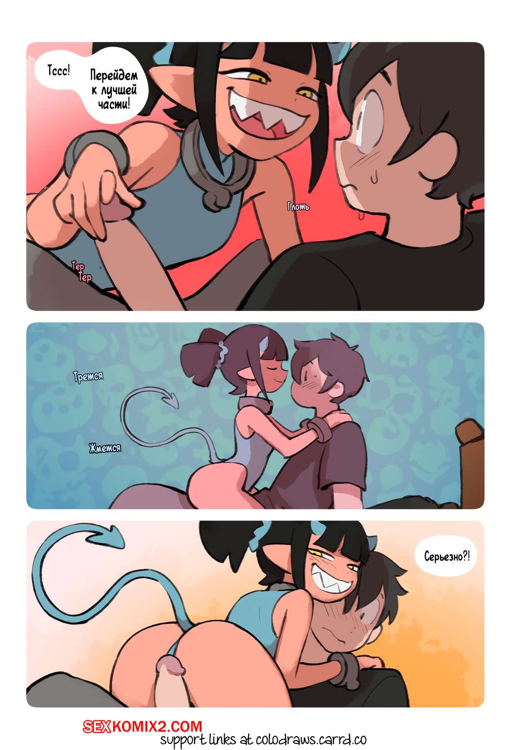 Порно комикс Сладкий. Часть 1. SweetHex. The Webcomic. Парень устроил ритуал призыва, и призвал горячую демоницу. Красотку набросилась на него чтобы отблагодарить за освобождение из ада
