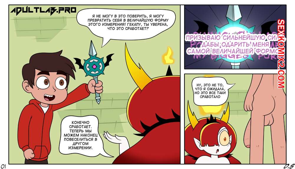 Порно комикс Стар против. Неправильное заклинание. Марко использовал не верное заклинание и слишком сильно увеличил свой член. Его подружке это даже понравилось.