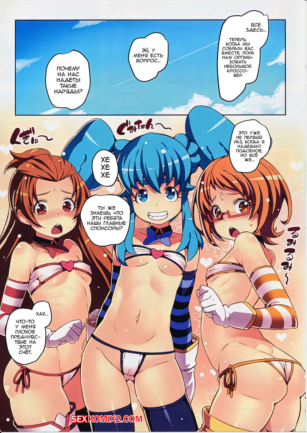 Порно комикс Симпатичные три звезды. Pretty Three Stars. Трое подружек пришли на пляж в жаркий день. Парни сразу обратили на них внимание, значит секс у них будет точно.