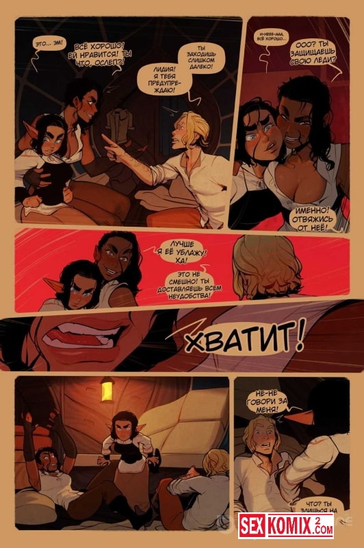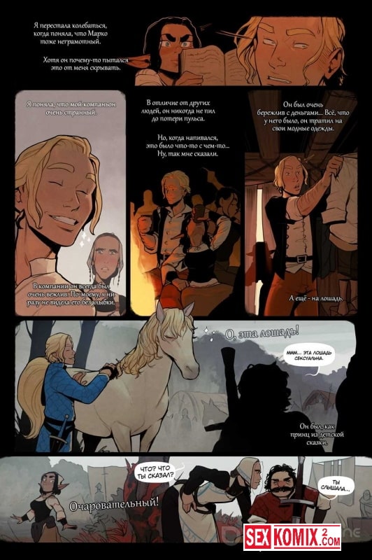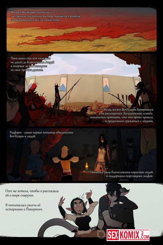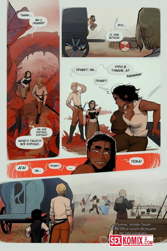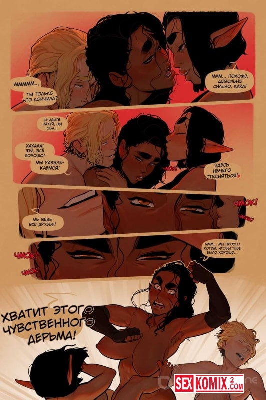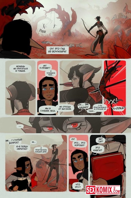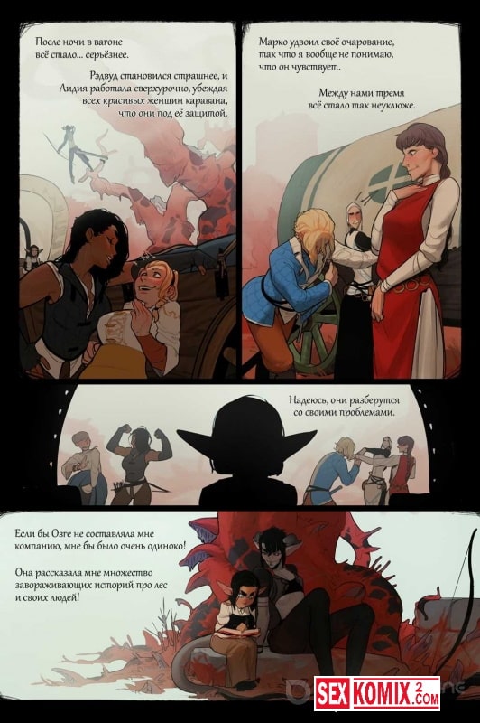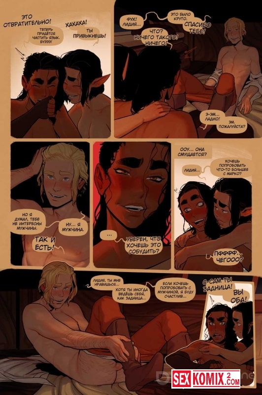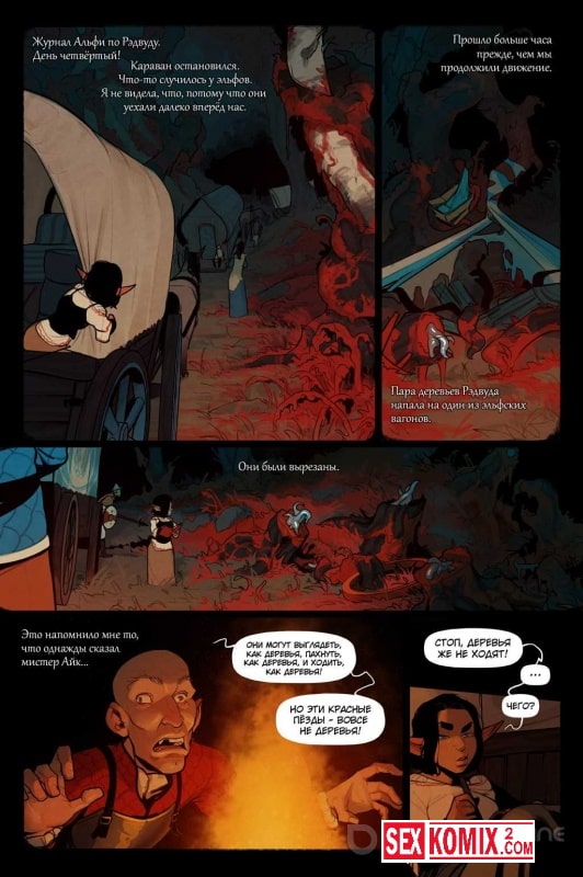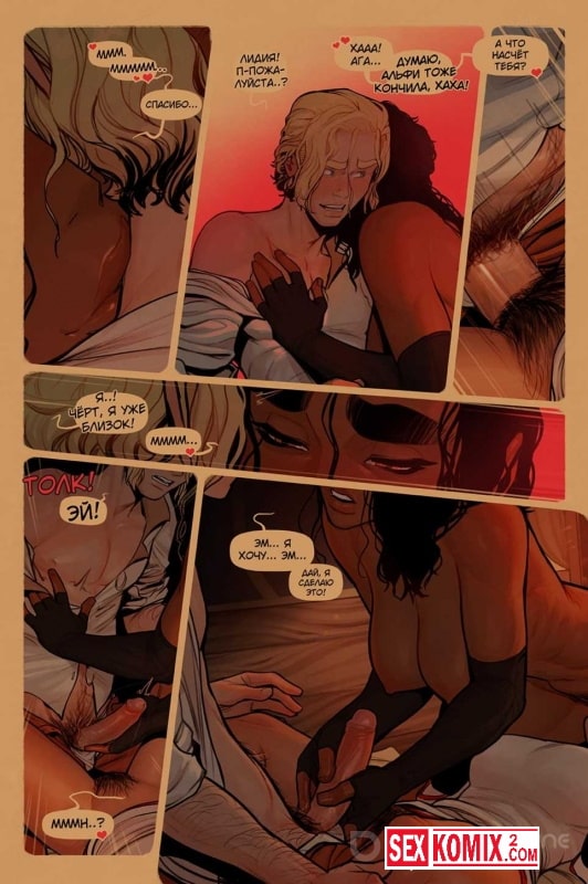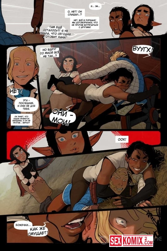 Порно комикс Альфи. Часть 9. Смелая эльфика продолжает свое путешествие по волшебному миру со своим другом. Они встречают сексуальную девушку война. Девушка проситься заночевать с ними и ночь соблазняет обоих. Всю ночь они занимаются горячим сексом и по утру их пути расходятся.