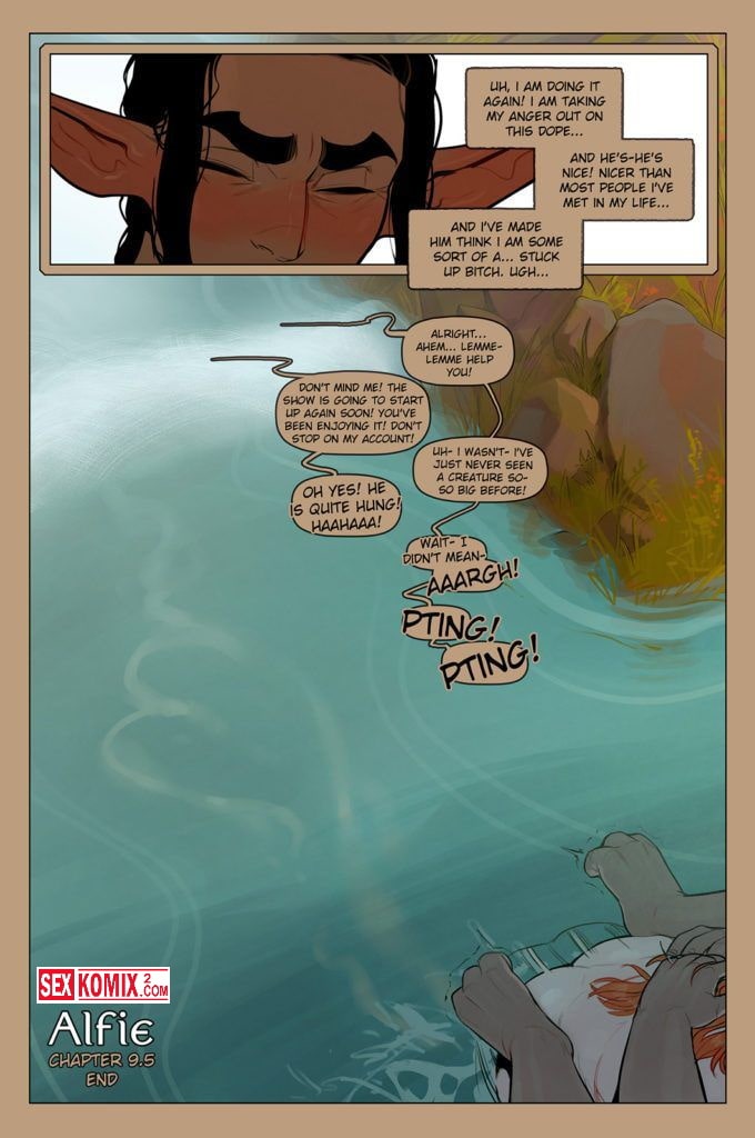 Порно комикс Альфи. Часть 9.5. Английский. Много всего интересного эльфийка небольшого роста и её спутник повидали. Но это просто нечто, они увидели голую женщину циклопа, а самое интересное, что и парня циклопа. Они занялись горячим сексом на заброшенном озере.