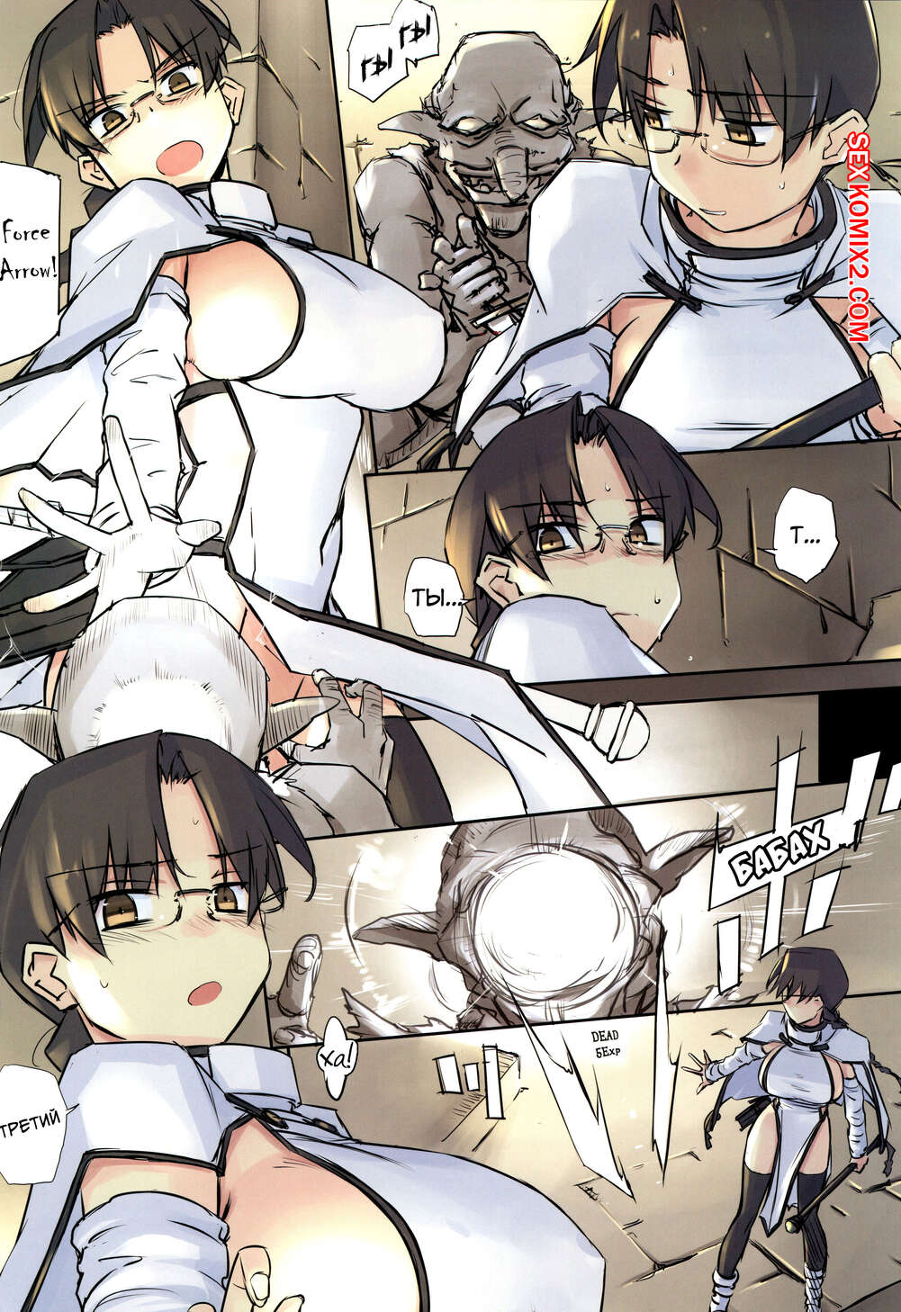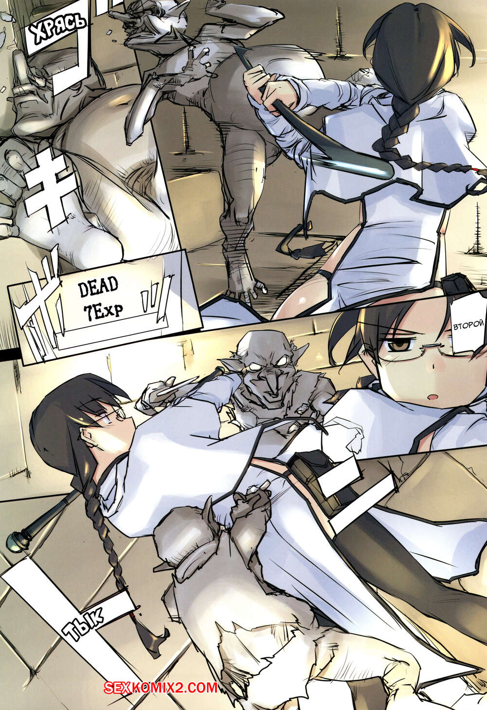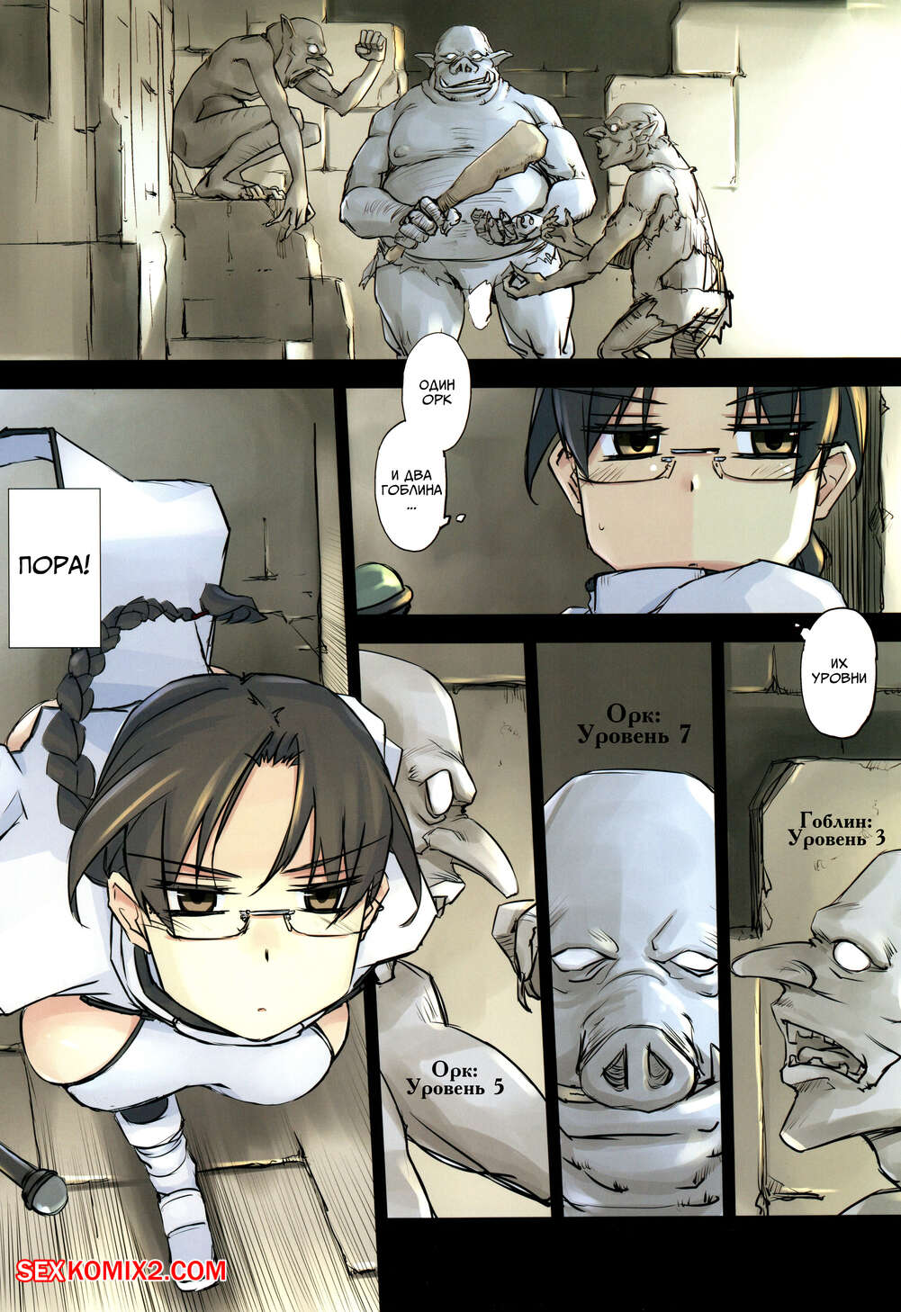 Порно комикс Подземелье для взрослых. Часть 1. D Dungeon for Adult Горячая сисястая брюнетка попала в подземелье, где на нее набросились монстры с большими хуями. Они раздели сучку и дали ей отсосать свои большие хуи, после чего хорошенько ее выебали.