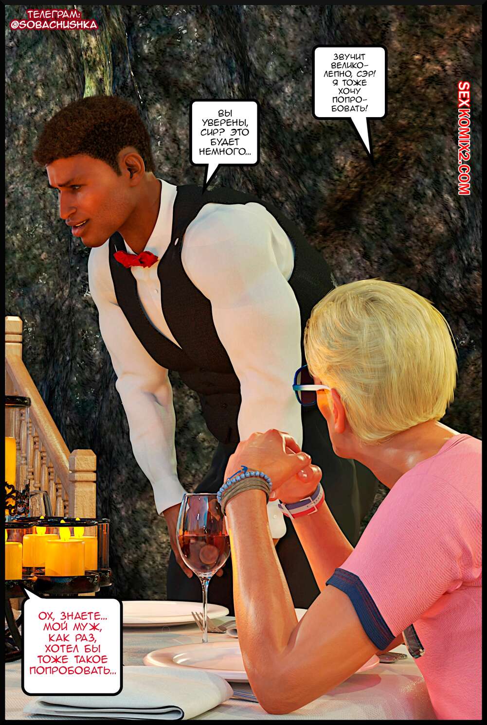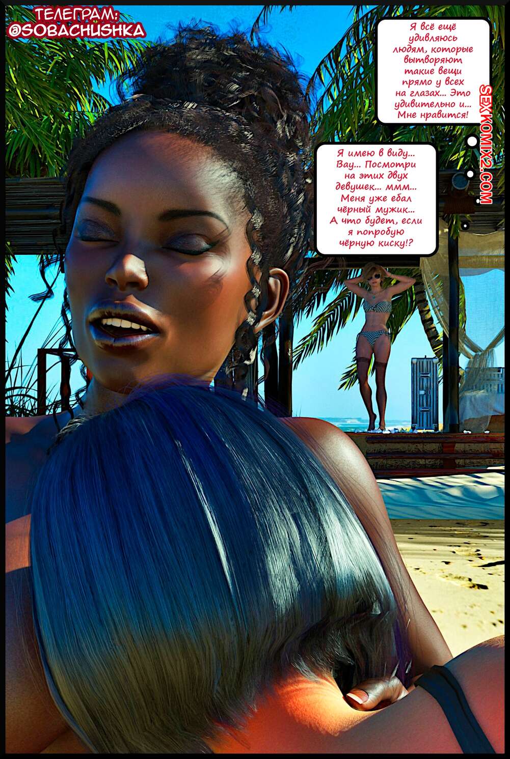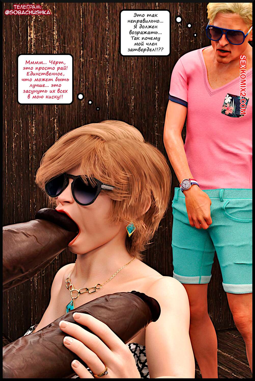 Порно комикс Остров гедонизма. Часть 2. Hedonism Island Сисястая милфа брюнетка встретилась с темнокожим парнем, чтобы хорошенько с ним повеселиться. Она разделась перед ним и стала сосать его большой хуй, после чего дала ему себя хорошенько выебать.