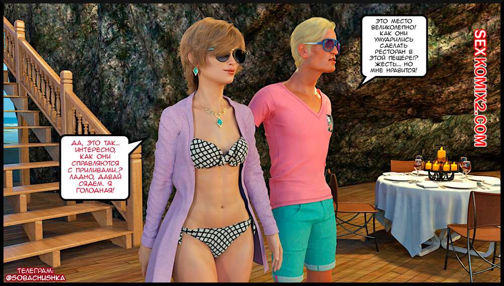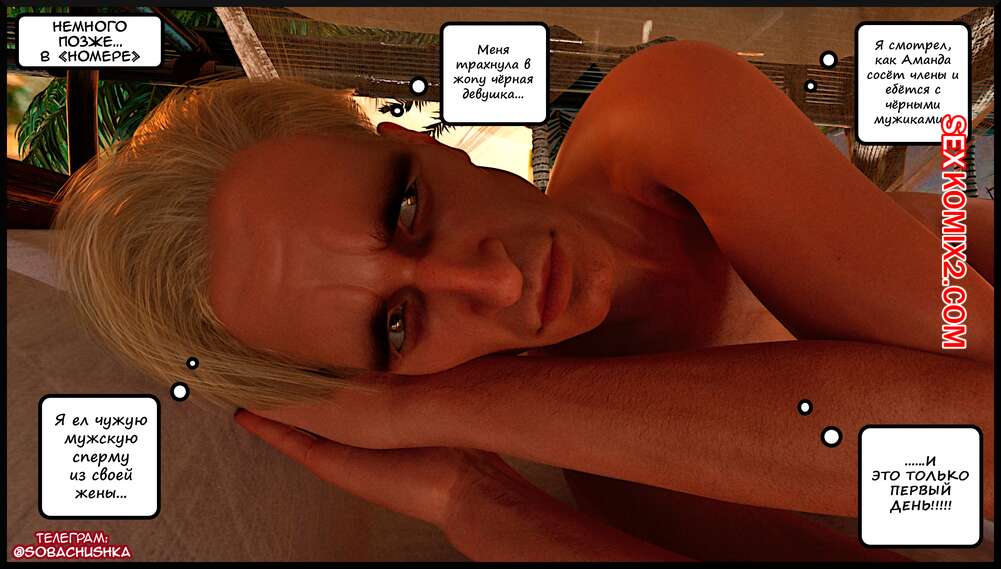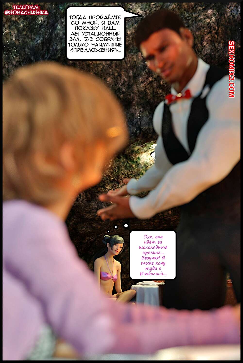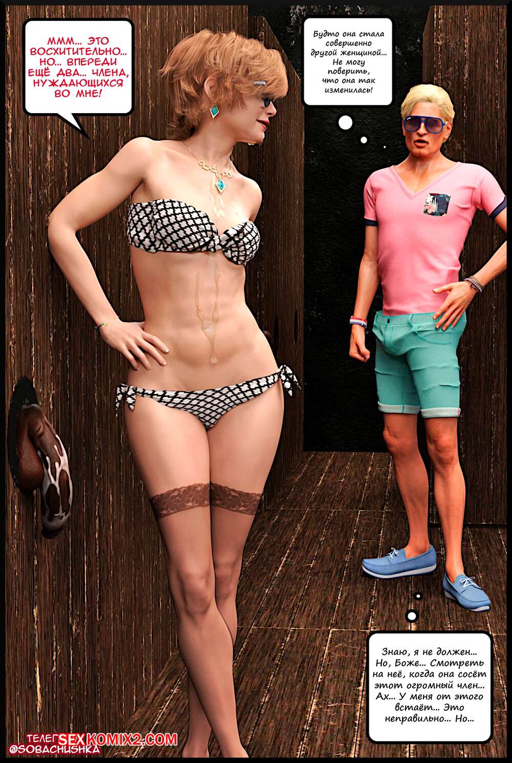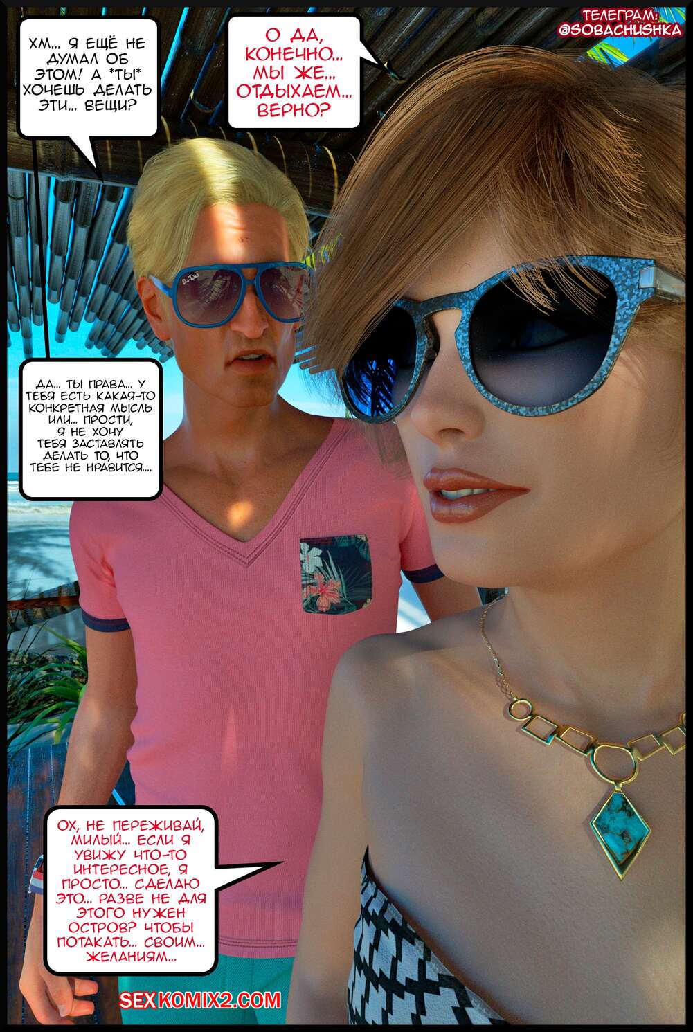 Порно комикс Остров гедонизма. Часть 2. Hedonism Island Сисястая милфа брюнетка встретилась с темнокожим парнем, чтобы хорошенько с ним повеселиться. Она разделась перед ним и стала сосать его большой хуй, после чего дала ему себя хорошенько выебать.