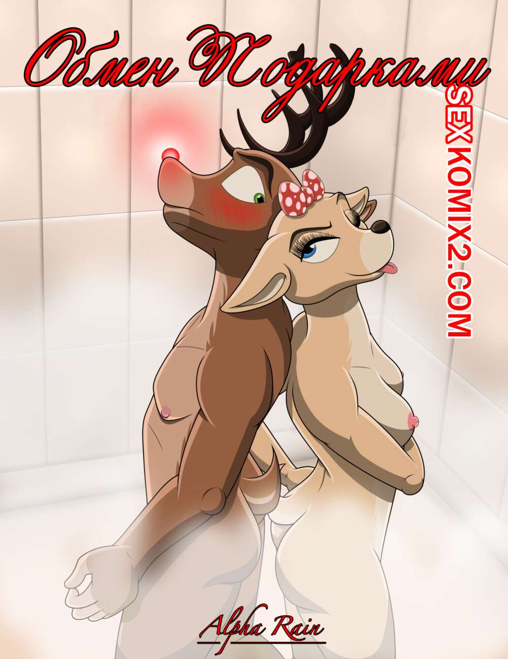 Порно комикс Обмен подарками. Alpha Rain Горячая сисястая красотка была очень возбуждена и решила сделать подарок своему дружку в душе. Она встала на колени и стала сосать его большой хуй, после чего дала парню себя хорошенько выебать.