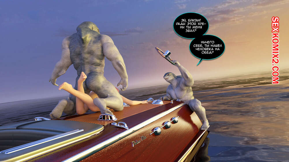 Порно комикс Велна. Угроза с океана. Velna. Ocean Threat. Amusteven Горячая сисястая брюнетка отдыхала на своей лодке в океане и к ней присоединилась акула монстр с большим хуем. Существо стало ласкать пизденку девушку, после чего выебало ее в пизду и задницу.