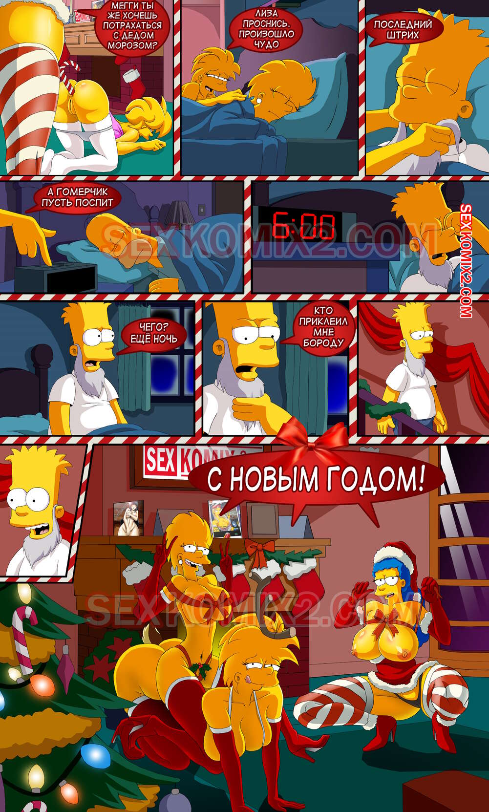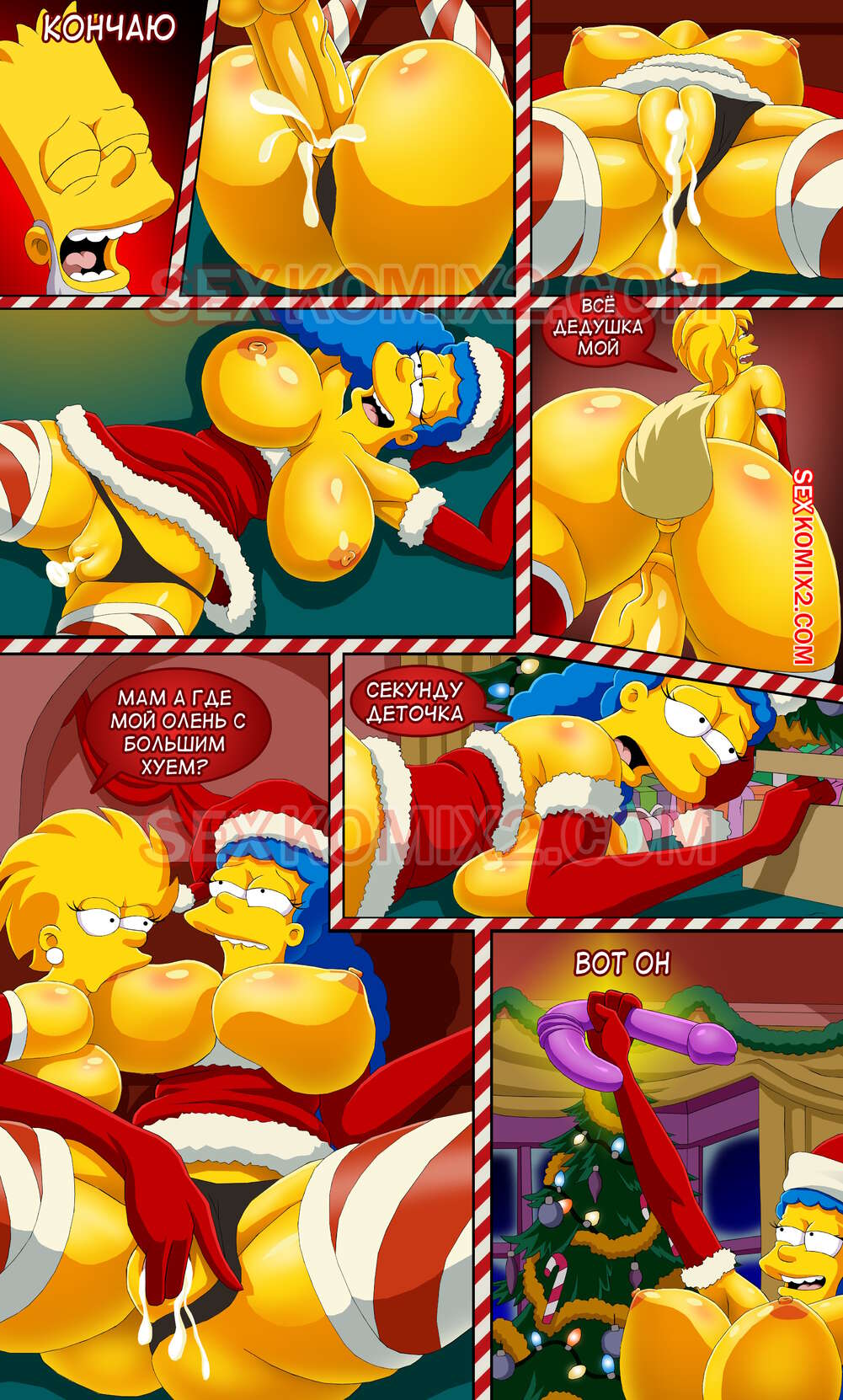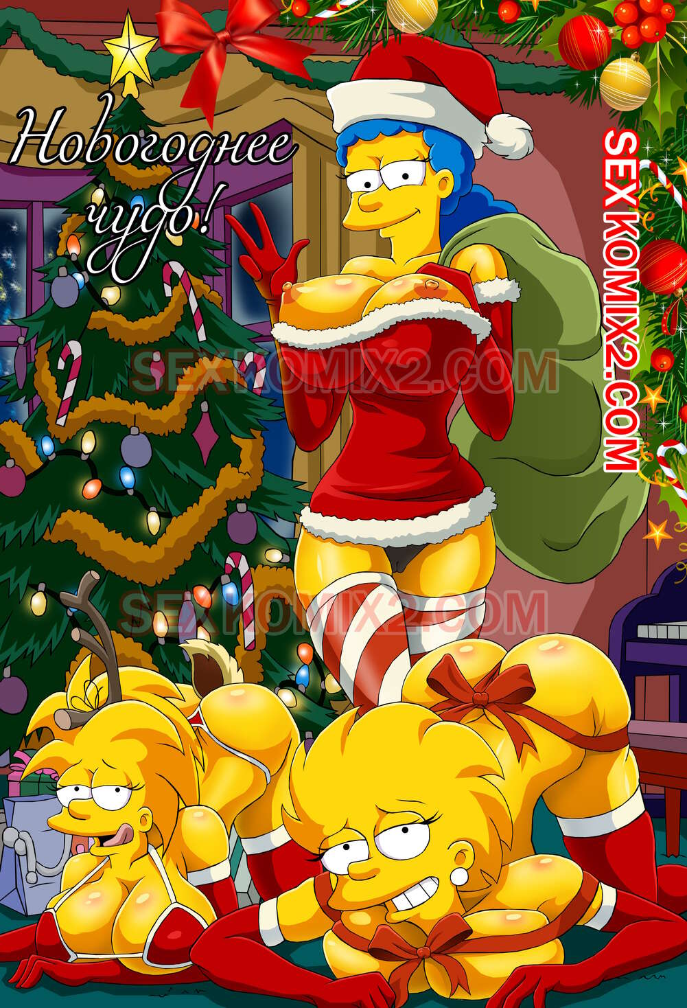 Порно комикс Симпсоны. Новогоднее чудо. by sexkomix2.com. Всех с праздником! А вот и новый комикс от нашего сайта. Семейка Симпсонов празднует новый год, все хотят подарки. Мардж не стала надеяться на деда мороза, и сама подготовила праздник для всей семьи.