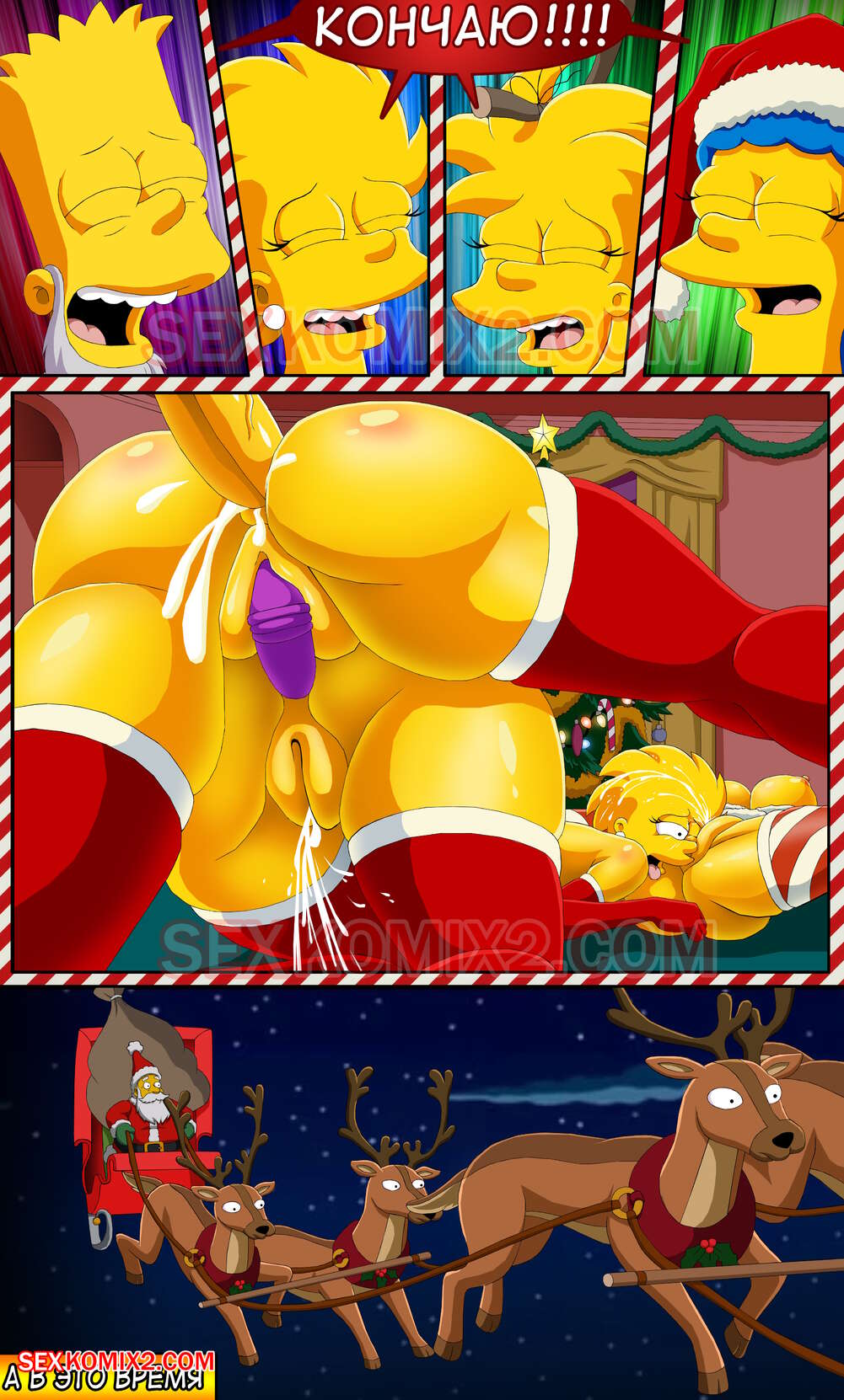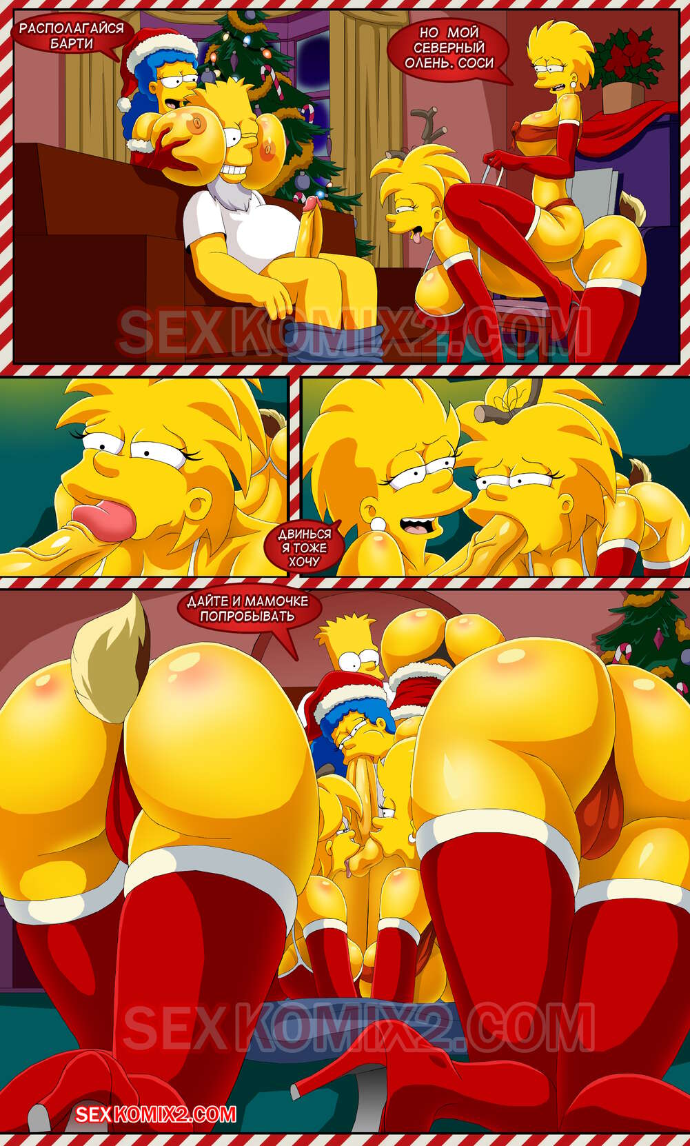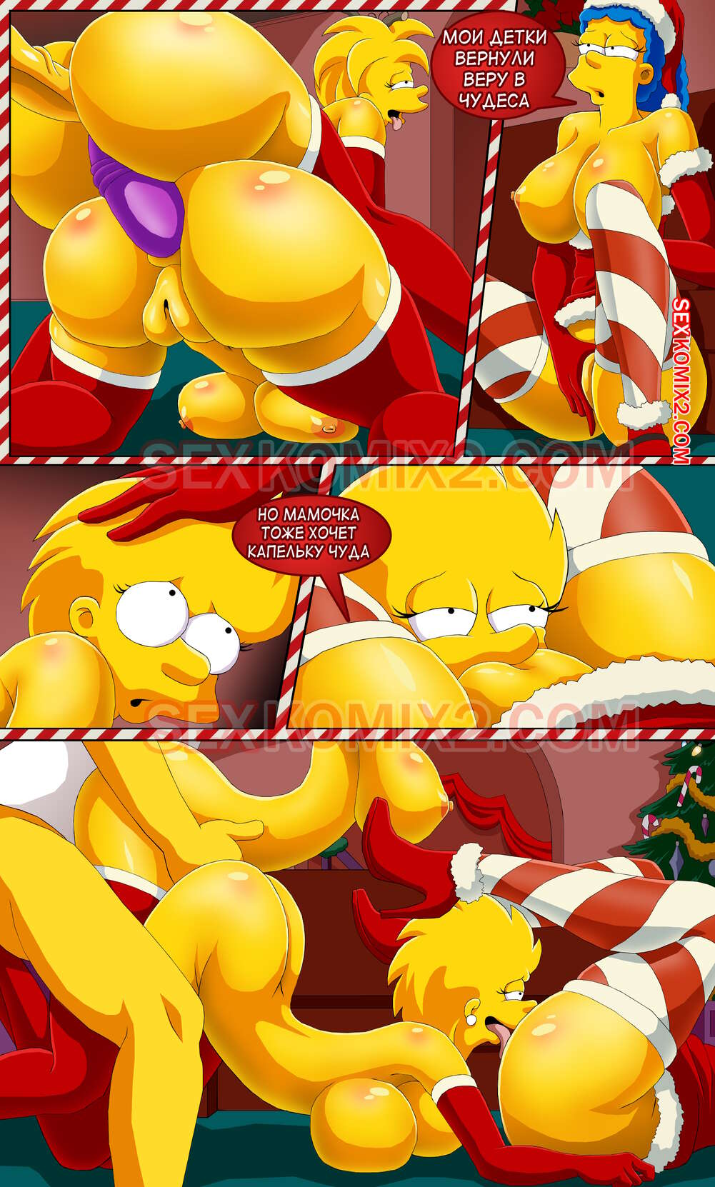 Порно комикс Симпсоны. Новогоднее чудо. by sexkomix2.com. Всех с праздником! А вот и новый комикс от нашего сайта. Семейка Симпсонов празднует новый год, все хотят подарки. Мардж не стала надеяться на деда мороза, и сама подготовила праздник для всей семьи.
