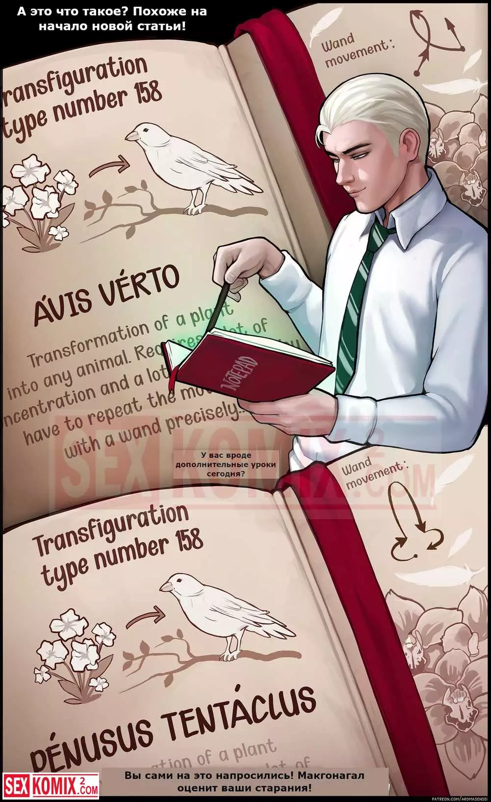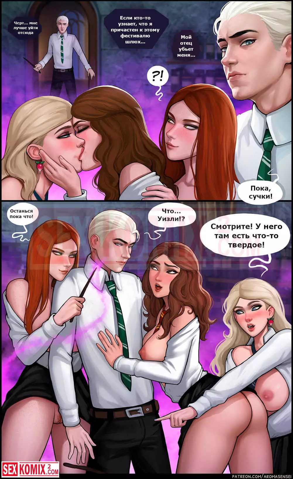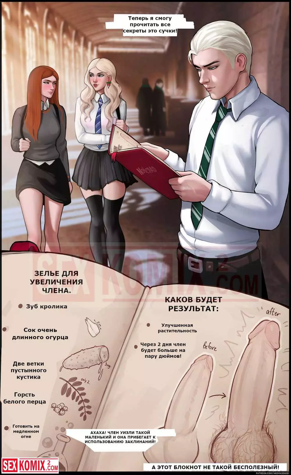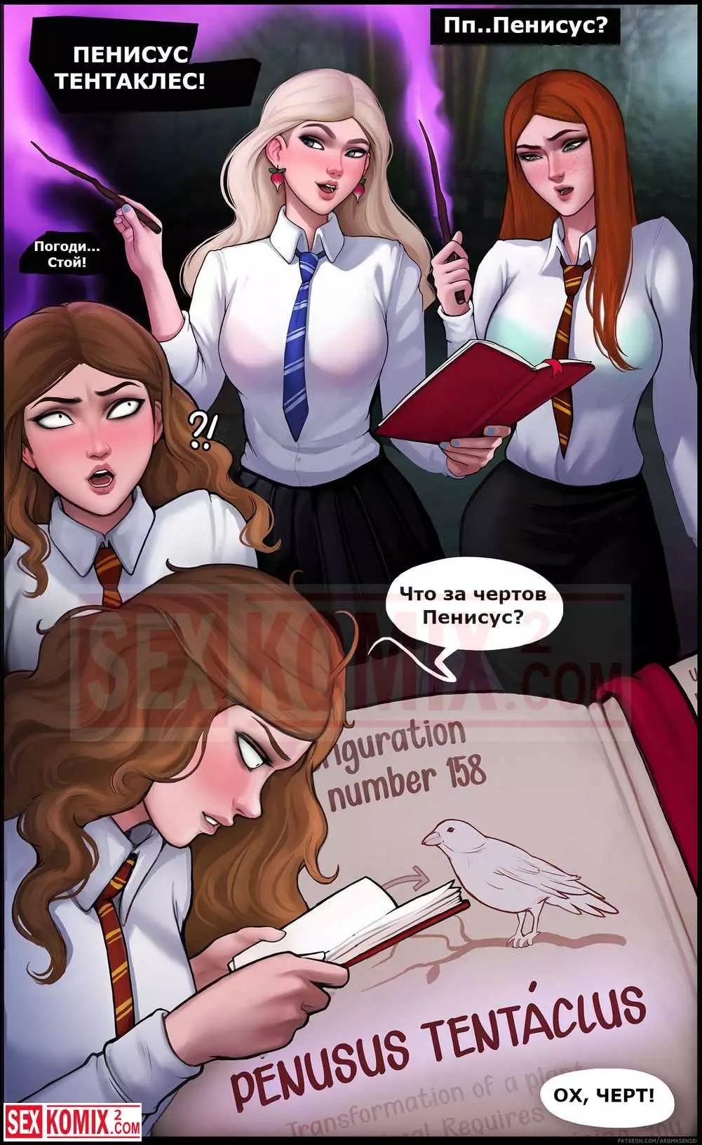 Порно комикс Дополнительный урок. Гермиона. Подружки из института магии решили пошалить и соблазнить своих знакомых парней. Они позвали их посмотреть на новые заклинания, которые те выучили.