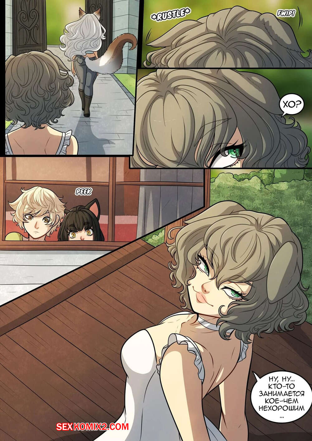 Порно комикс Кошачий замок. Часть 5. Feline Chateau Горячая сисястая брюнетка была очень возбуждена и хотела трахаться. Она разделась перед своим дружком и стала сосать его большой хуй, после чего дала ему себя выебать.