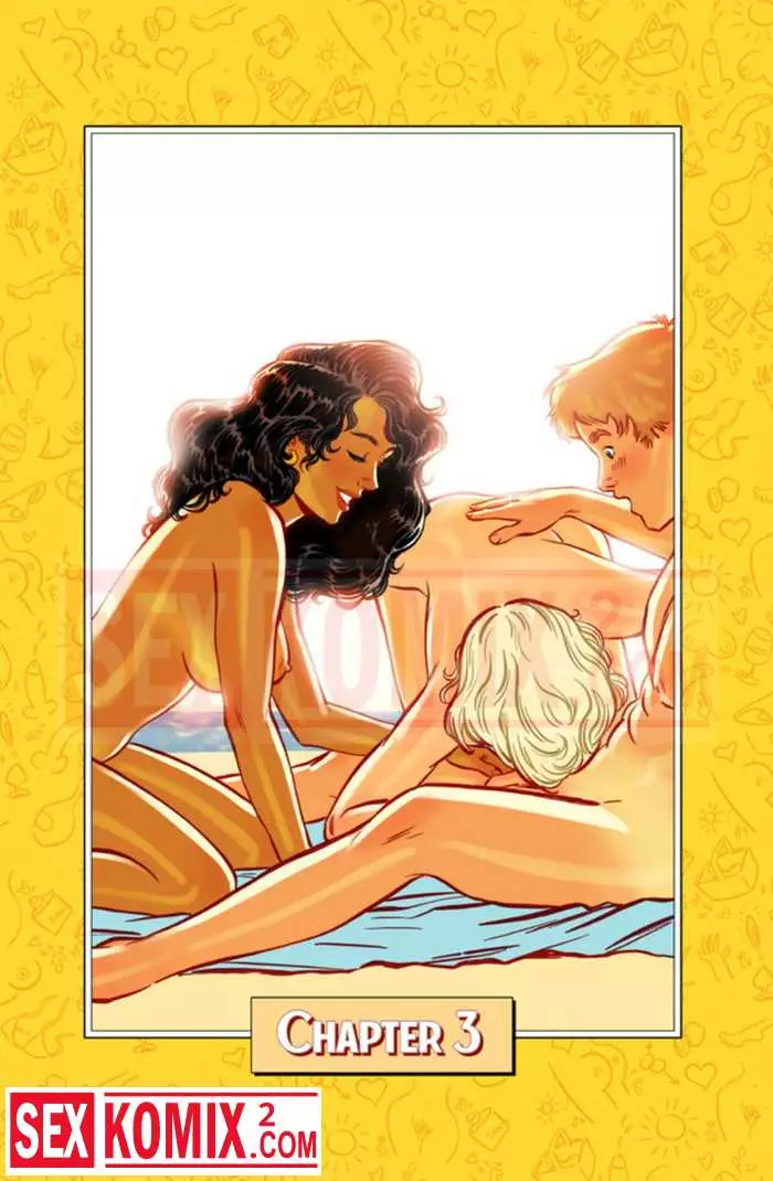 Порно комикс Волнующий остров. Часть 3. Конец долгого и очень жаркого секса под палящим солнцем на пляже двух парочек. Они хорошо провели время и уснули без сил.