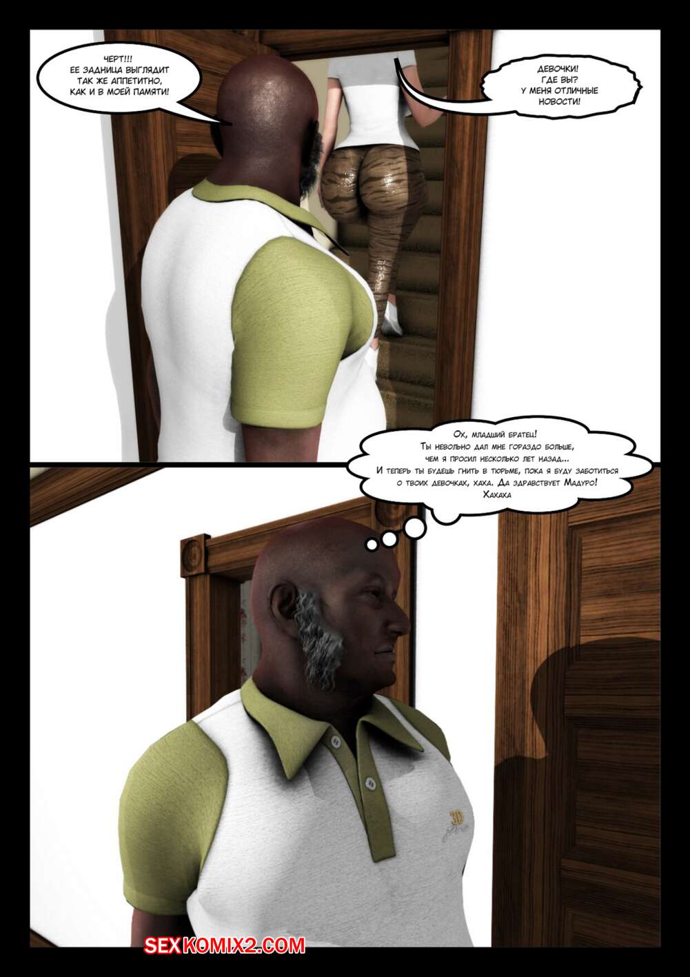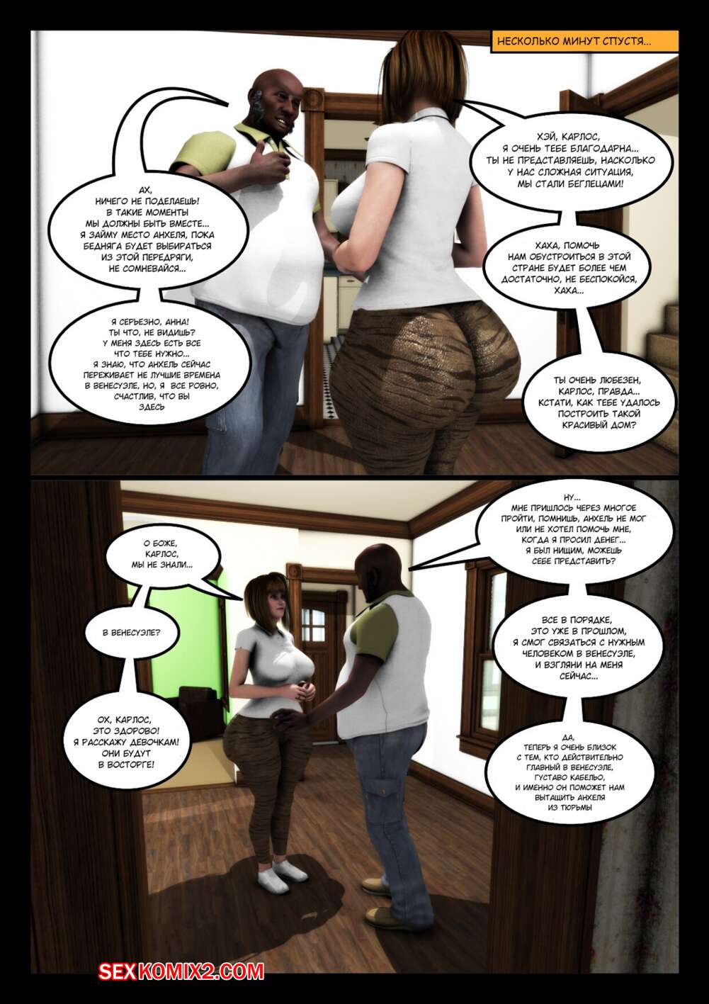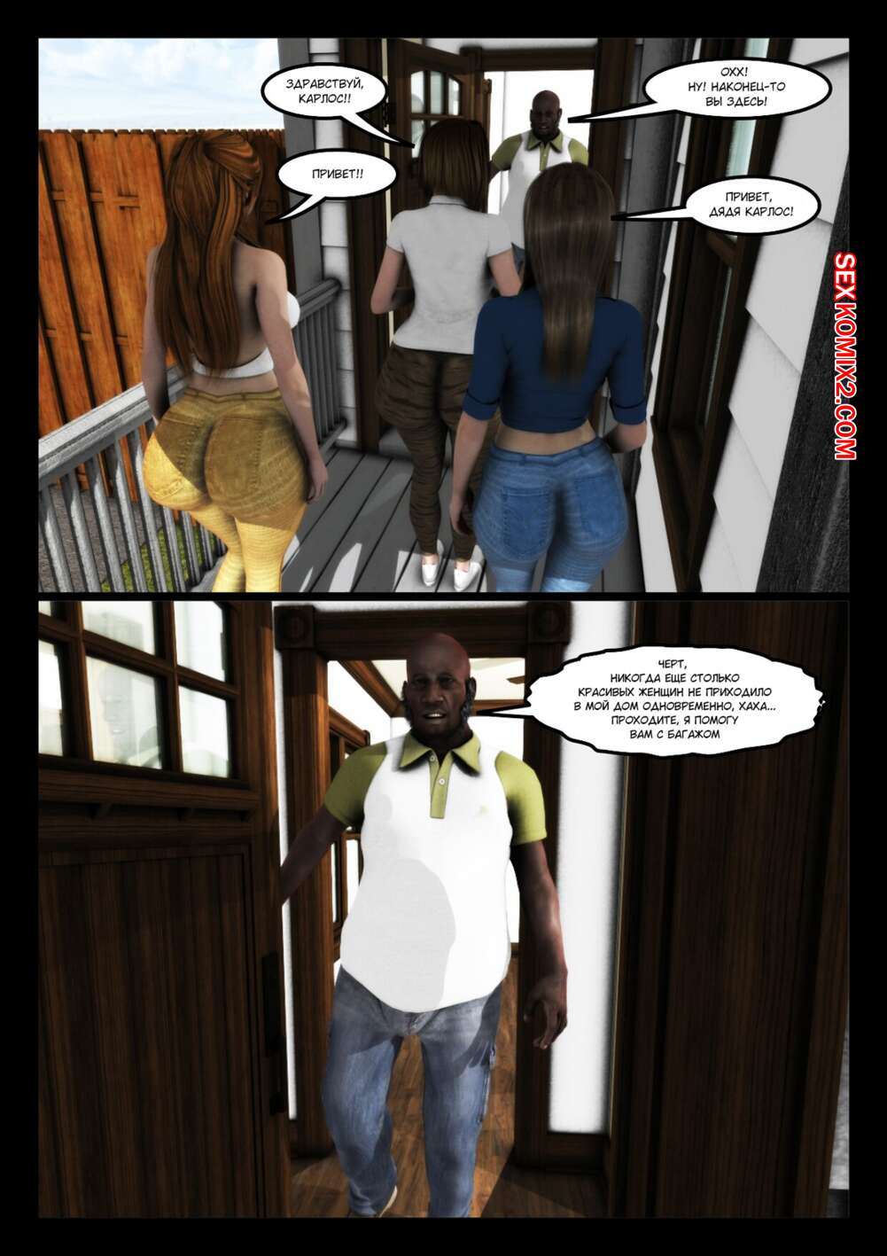 Порно комикс Дядя Карлос. Часть 1. Uncle Carlos. Moiarte Темнокожий парень соблазнил сисястую милфу брюнетку своим большим хуем. Красотка разделась перед ним и стала у него отсасывать, после чего дала парню себя выебать.