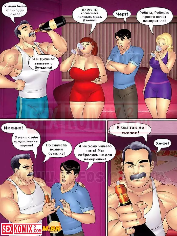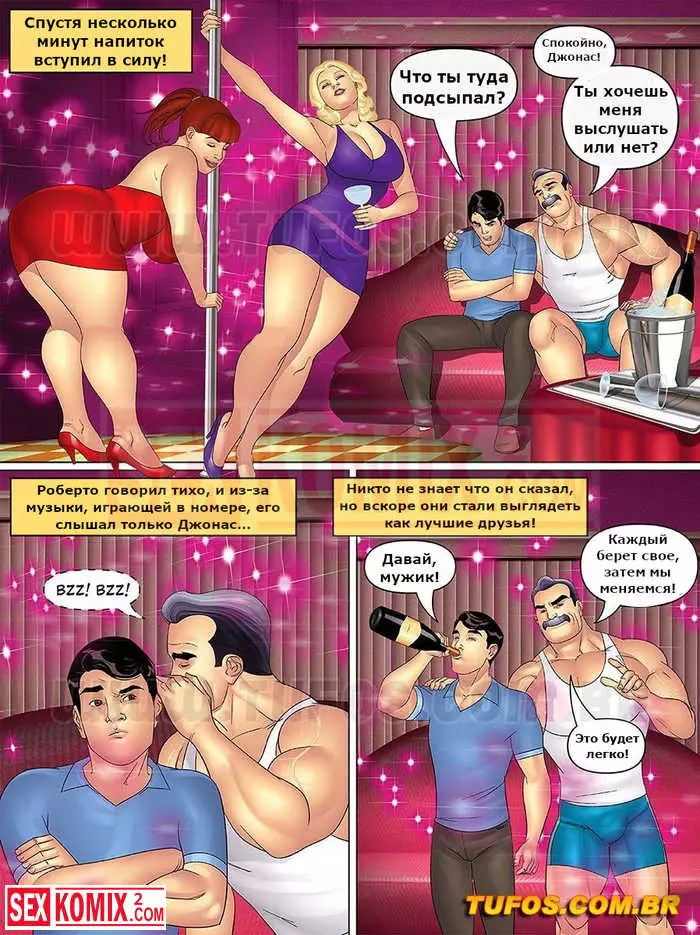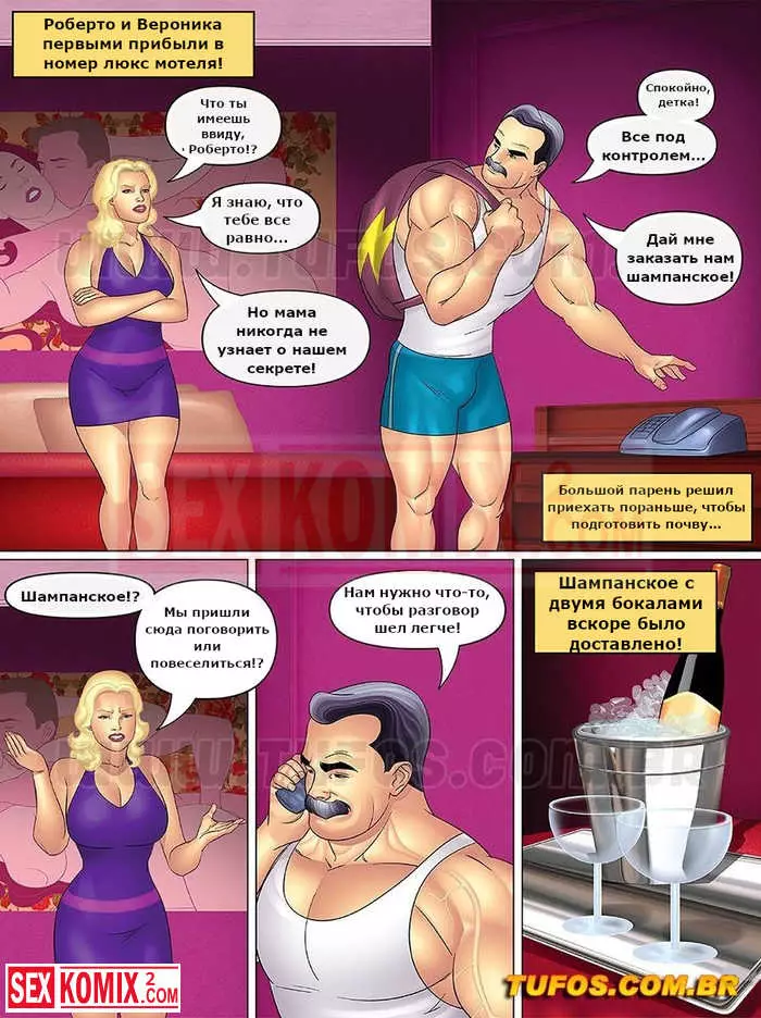 Порно комикс Тетя, кузины и племянник. Часть 10. Тайная встреча в мотеле. Мужчина решил совратить двух красоток на секс и пригласил их в свой номер. Он напоил их шампанским и девушки начали танцевать стриптиз.