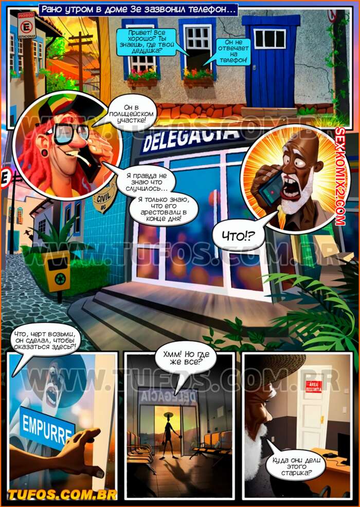 Порно комикс Удалые старички. Часть 13. Преступление и наказание. Tufos Старик пошел в полицию, чтобы вытащить своего друга из тюрьмы. Там он встретил горячих красоток и решил с ними повеселиться, хорошенько выебав сучек во все дырочки.