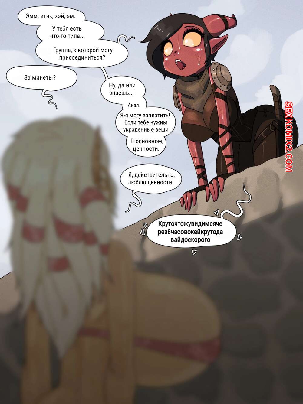 Порно комикс Rapscallion. Эльф, драконид и тифлинг Горячая сисястая блондинка путешествует со своим дружком. Иногда они решают немного повеселиться, так что красотка сосет большой хуй парня и дает ему себя выебать во все дырочки.
