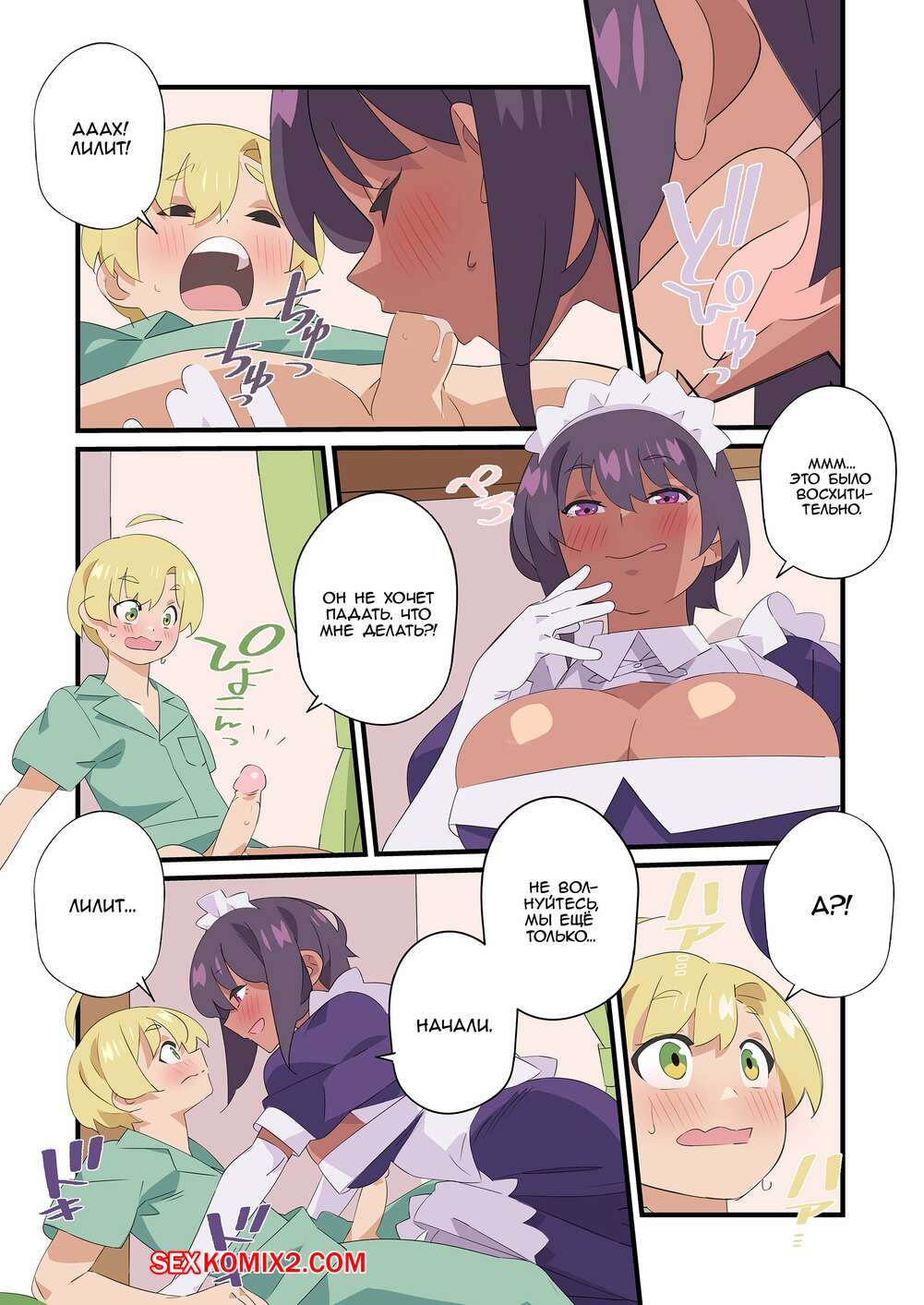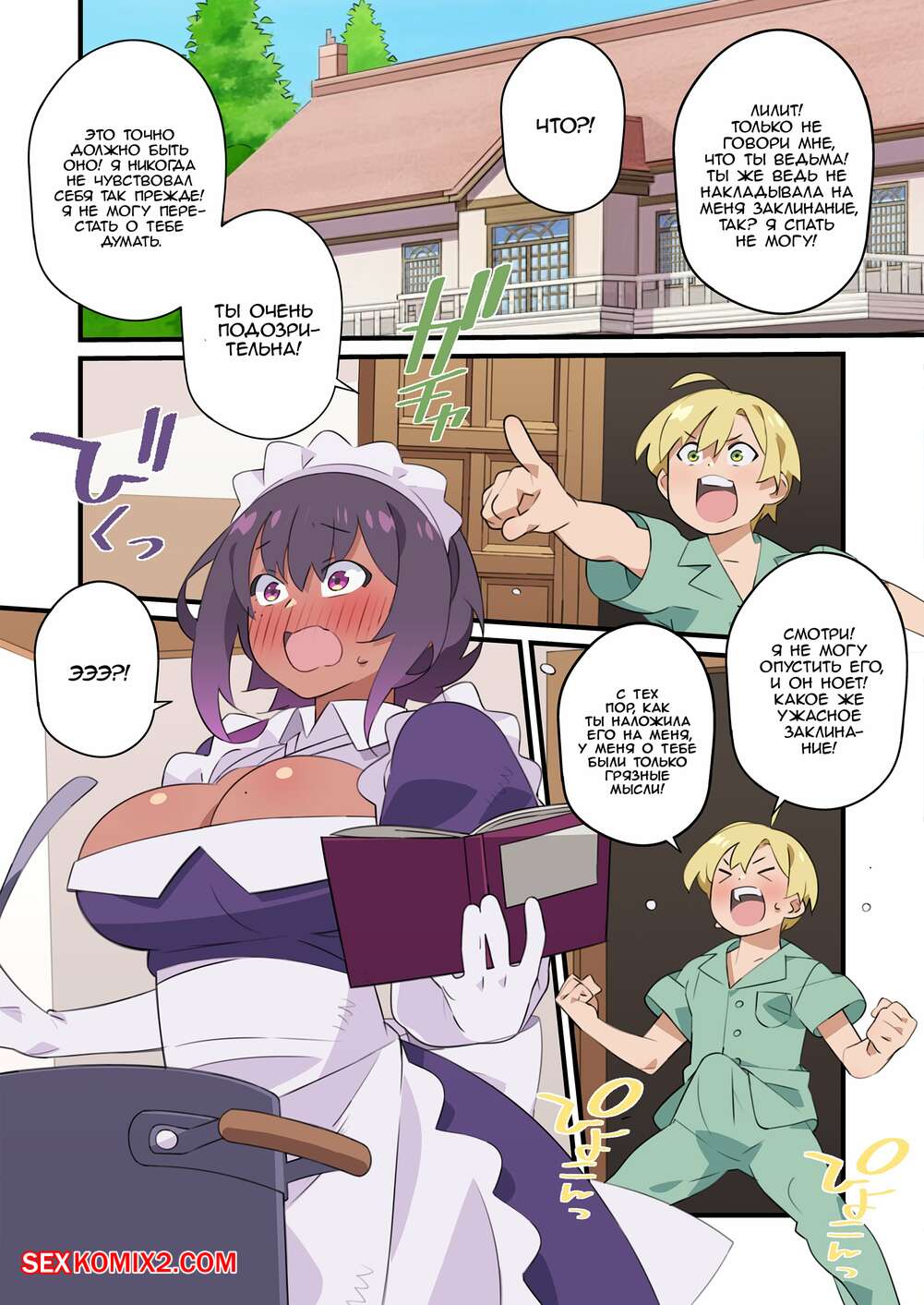 Порно комикс Saikin Yatotta Maid ga Ayashii. Заклинание Лилит. Nisego Горячая брюнетка горничная была очень возбуждена и хотела трахаться. Она разделась перед молодым парнем и стала сосать его большой хуй, после чего дала ему себя выебать.