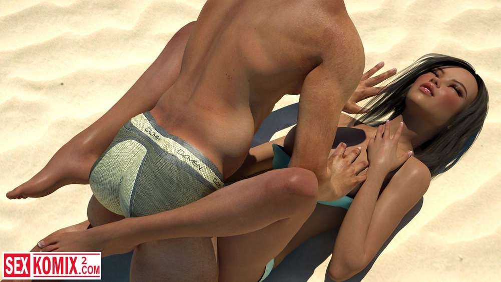 Порно комикс Летняя жара. Аппетитная брюнетка загорала на теплом песке, к ней прилег парень и предложил развлечься. На пляже никого не было и девушка согласилась.