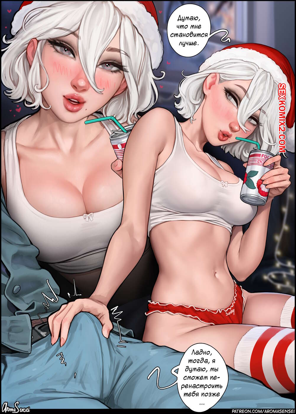 Порно комикс Зимние приключения. Aroma Sensei Горячие сексуальные красотки были очень возбуждены и решили повеселиться со своими дружками на новогодние праздники. Девушки разделись и стали сосать большие хуи парней, после чего дали им себя выебать.