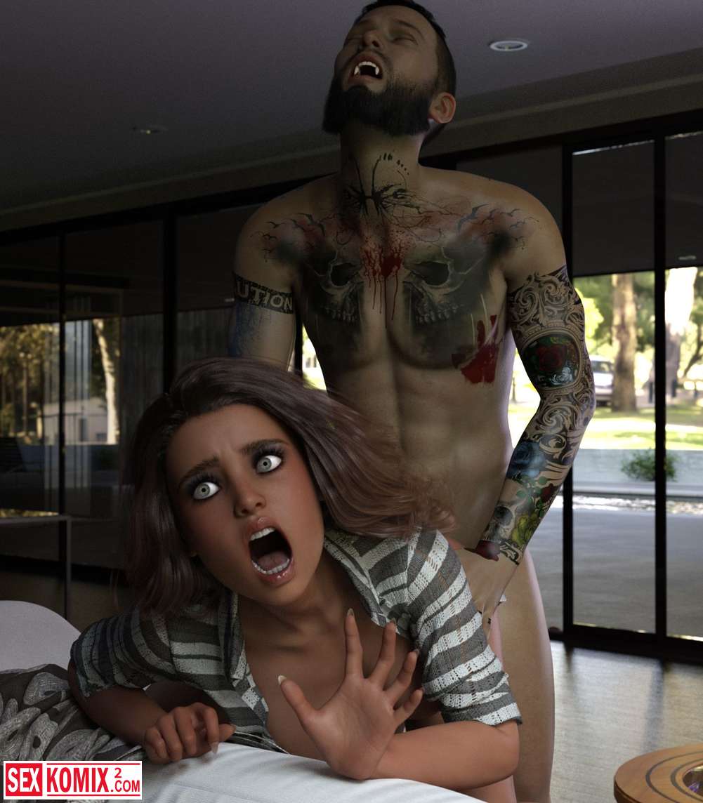 Порно комикс Вампир. Брюнетка пришла домой после прогулки, но она не знала, что за ней проследил вампир. Парень проник в её дом и укусил в шею.