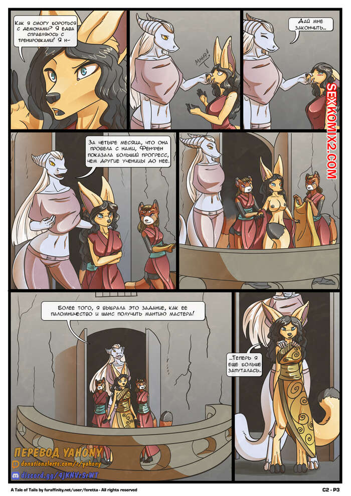 Порно комикс Tail of tails. Глава 2. Мечты о полете. Feretta Горячая сисястая брюнетка была очень возбуждена и хотела трахаться. Она раздела свою сексуальную подругу и стала ласкать ее пизденку, после чего дала ей себя хорошенько выебать.