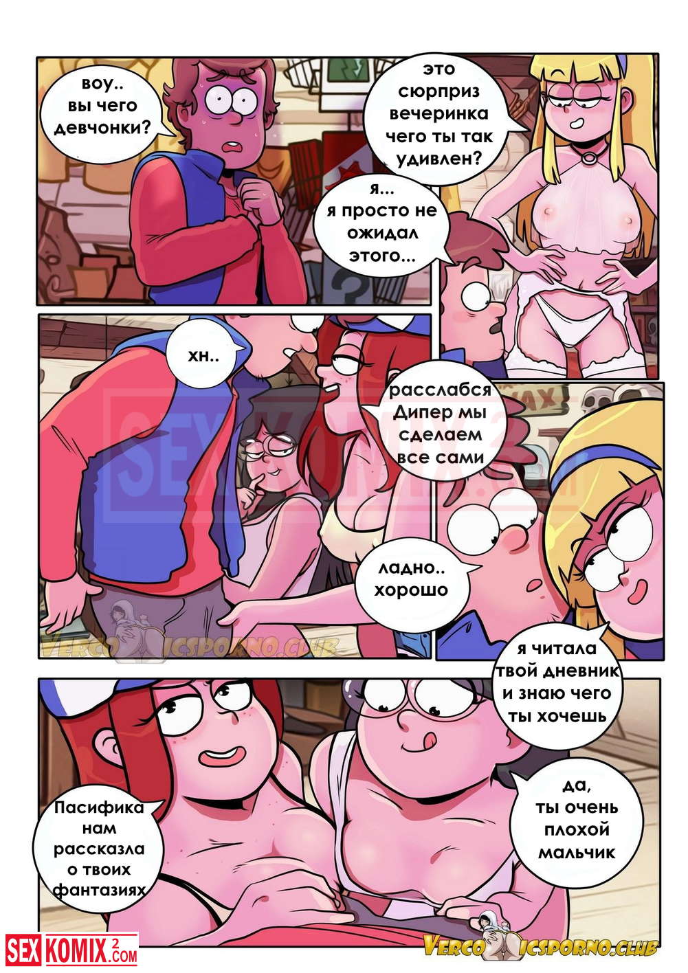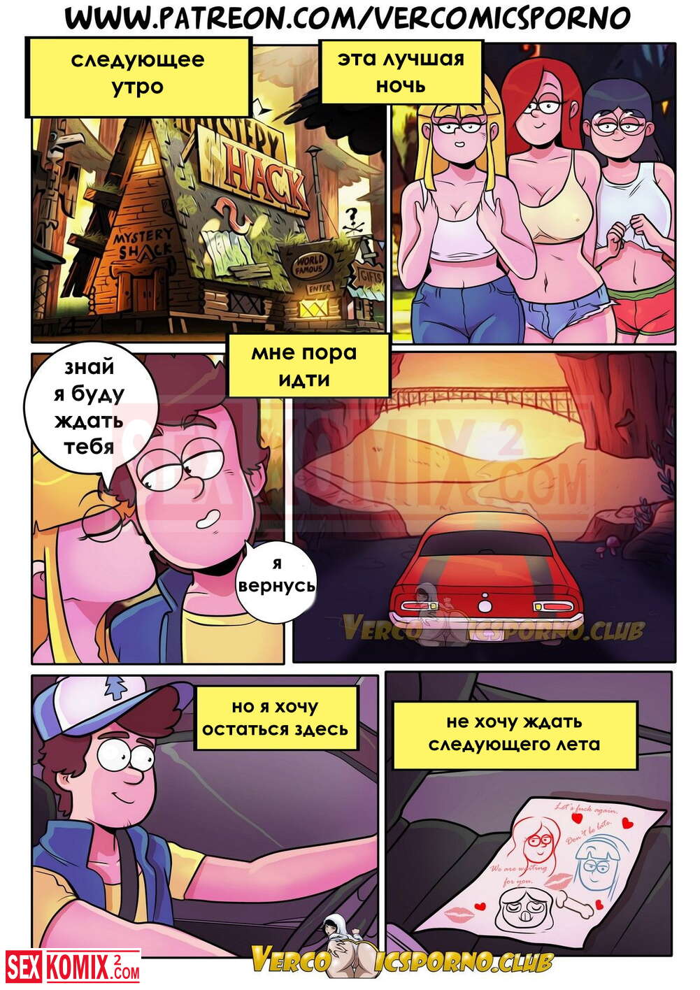 Порно комикс Следующее Лето. Дипер возвращается в Гравити Фолз спустя 10 лет, он на может на долго оставаться. Но девушки устроили ему прощальную вечеринку. И организовали групповой секс со всеми ими.