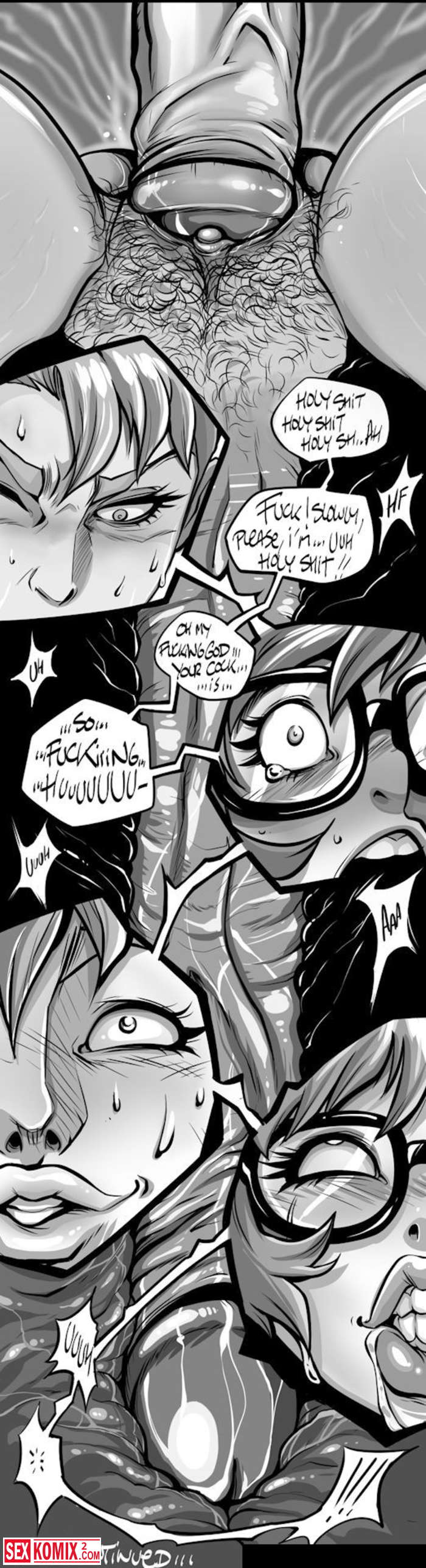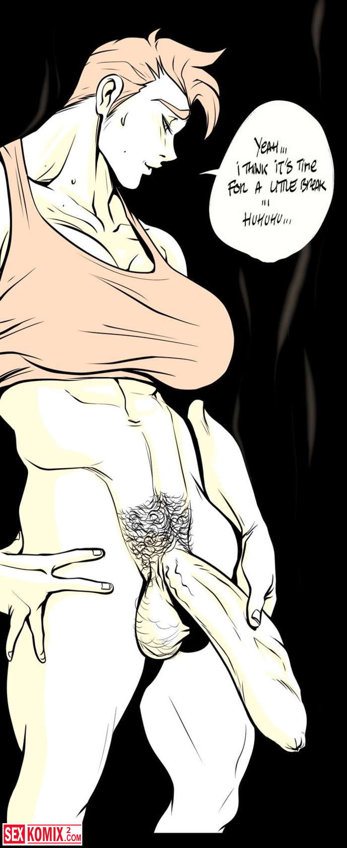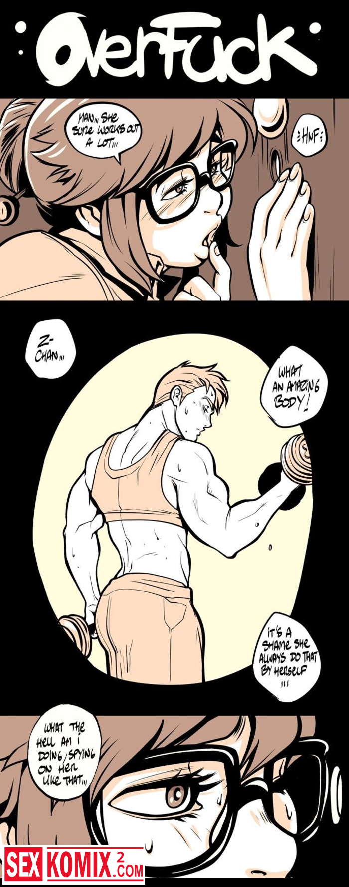 Порно комикс Overfuck Заебать. Сочная девушка наблюдает за своим другом накаченном спортсменом через щелоку. Она сильно возбудилась от его огромного члена.