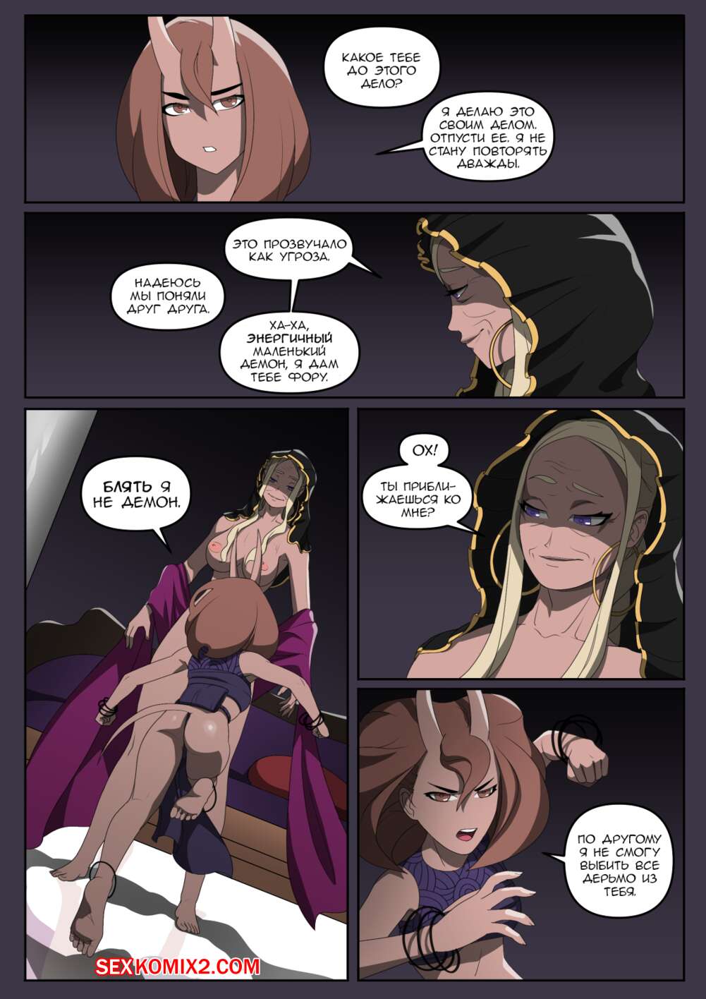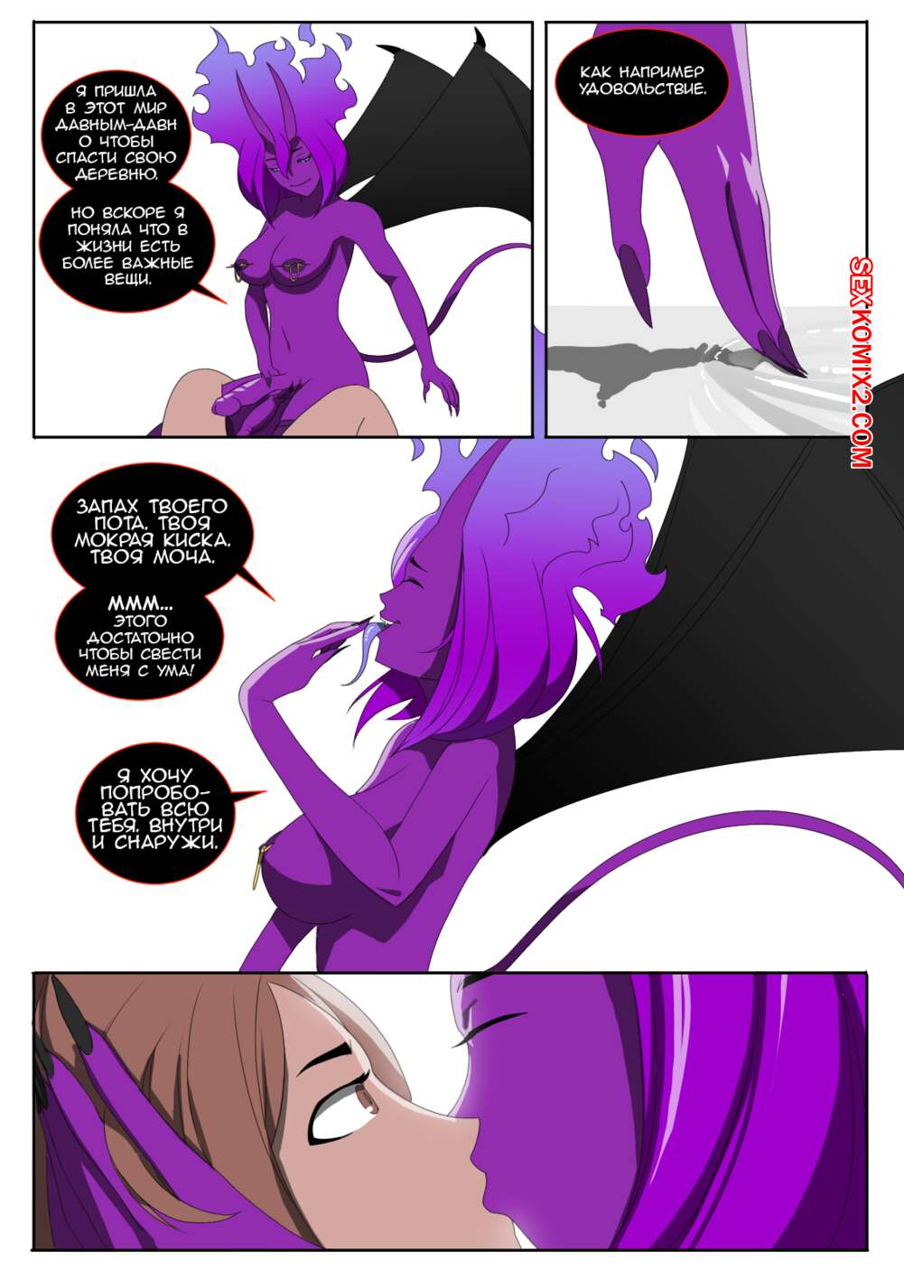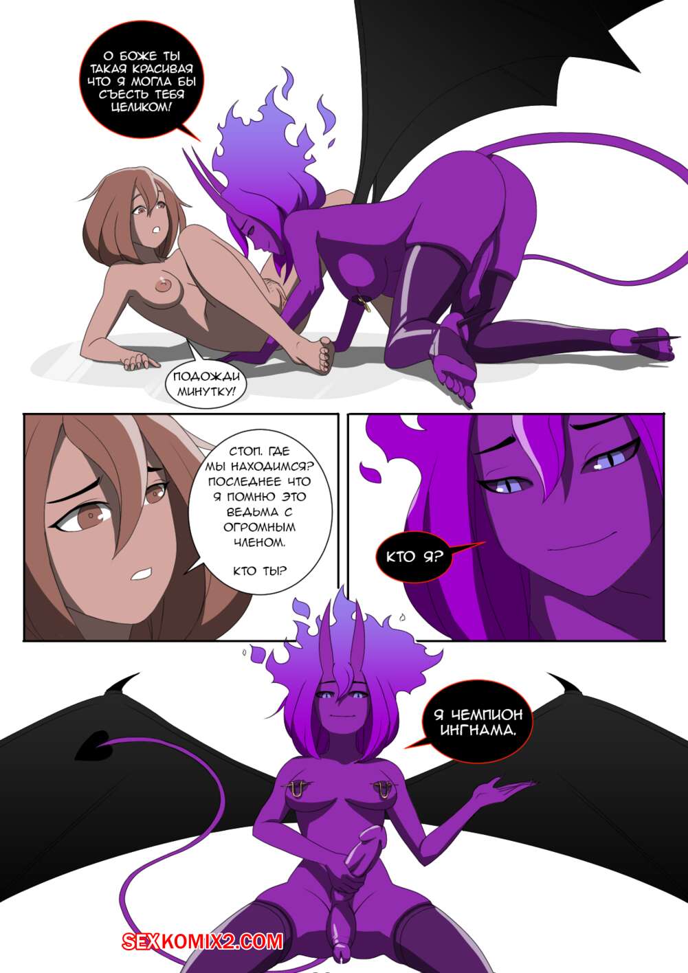 Порно комикс Corruption Of Champions. For Ingnam. Часть 3. 5kun Красотка демон с двумя членами была очень возбуждена и решила повеселиться с сексуальной брюнеткой. Она стала ласкать ее пизденку, после чего хорошенько ее выебала.