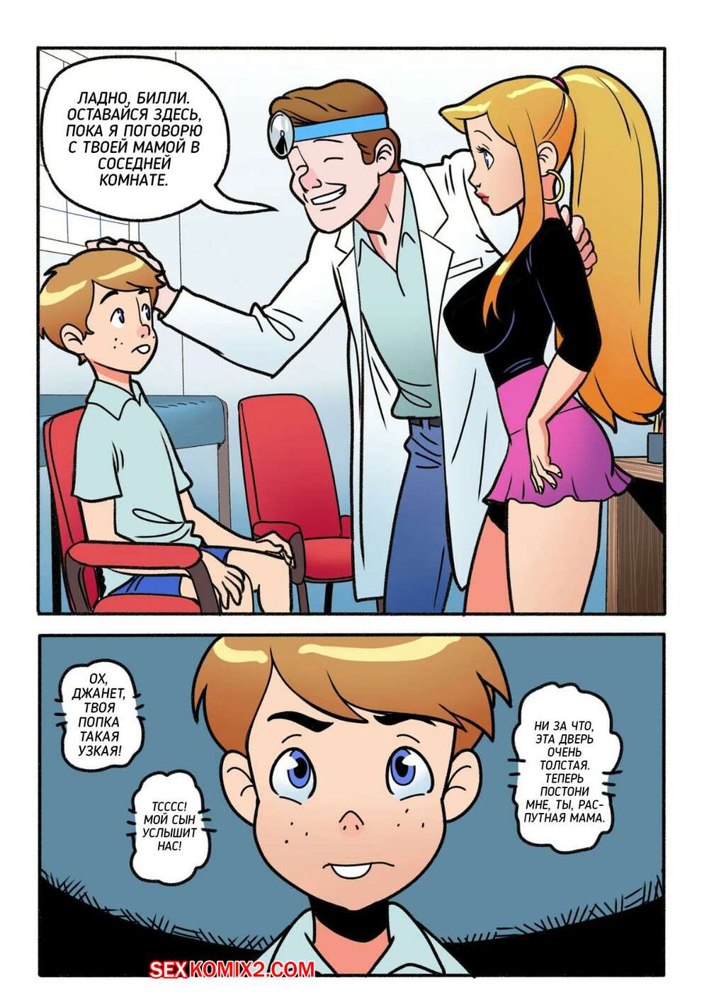 Порно комикс Не чуди с моей мамой. Tekuho Сисястая блондинка милфа отвела своего сына к стоматологу, после чего решила повеселиться с врачом. Красотка разделась перед ним и отсосала хуй парня, после чего дала ему себя выебать в пизду и задницу.