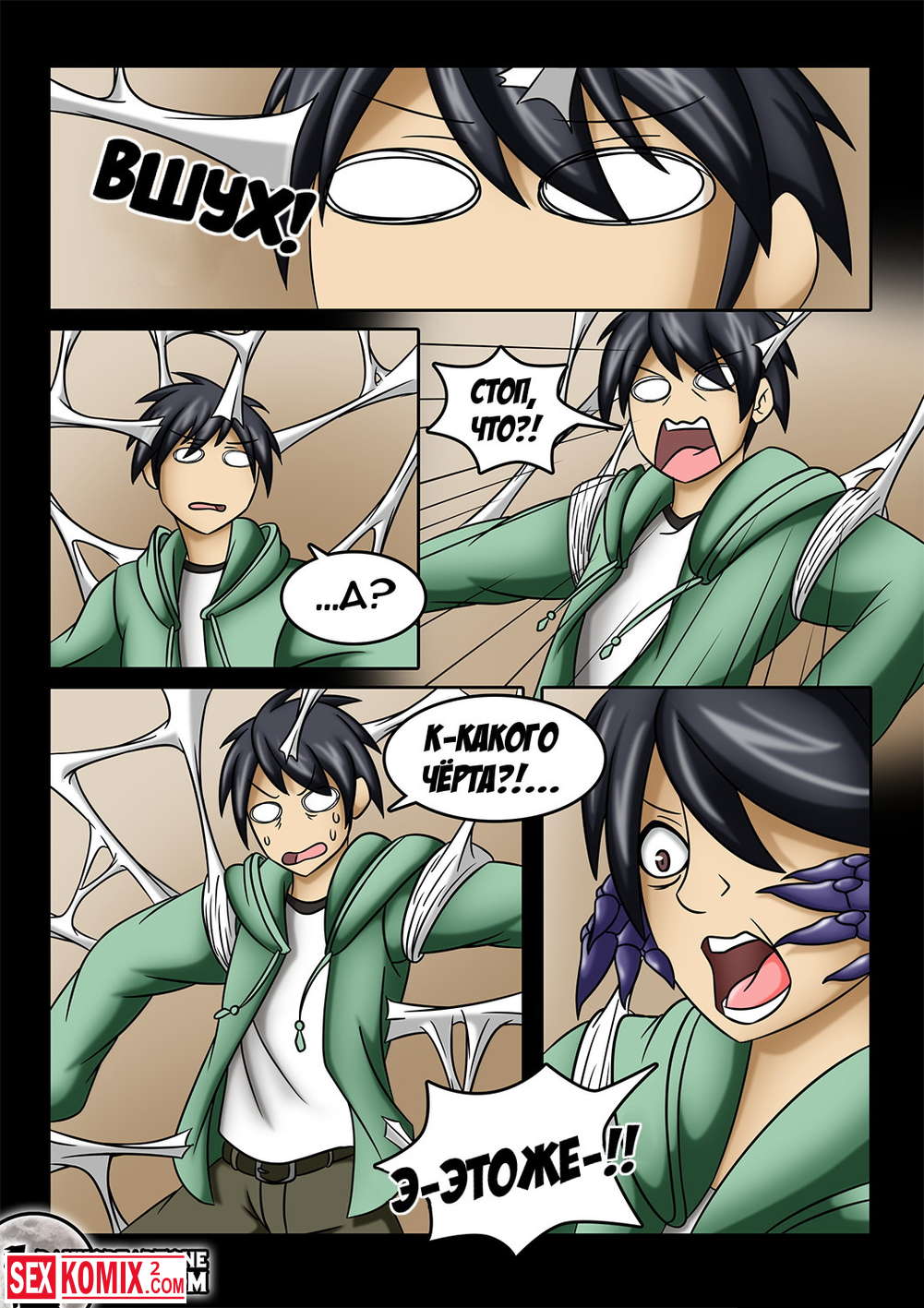 Порно комикс Повседневная жизнь с девушкой монстром. На половину девушка на половину паук, тоже хочет внимания со стороны мужчины и она хочет заниматься сексом.