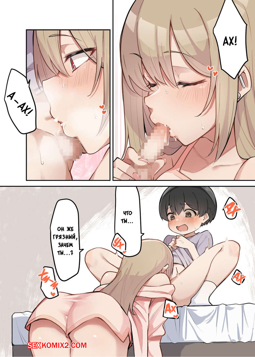 Порно комикс Gyaru JK Onee and Shota. Часть 3. MM Парень дрочил на свою сексуальную сестренку и красотка решила ему помочь. Она встала на колени берет братиком и отсосала его хуй, от чего он быстро кончил ей на лицо.