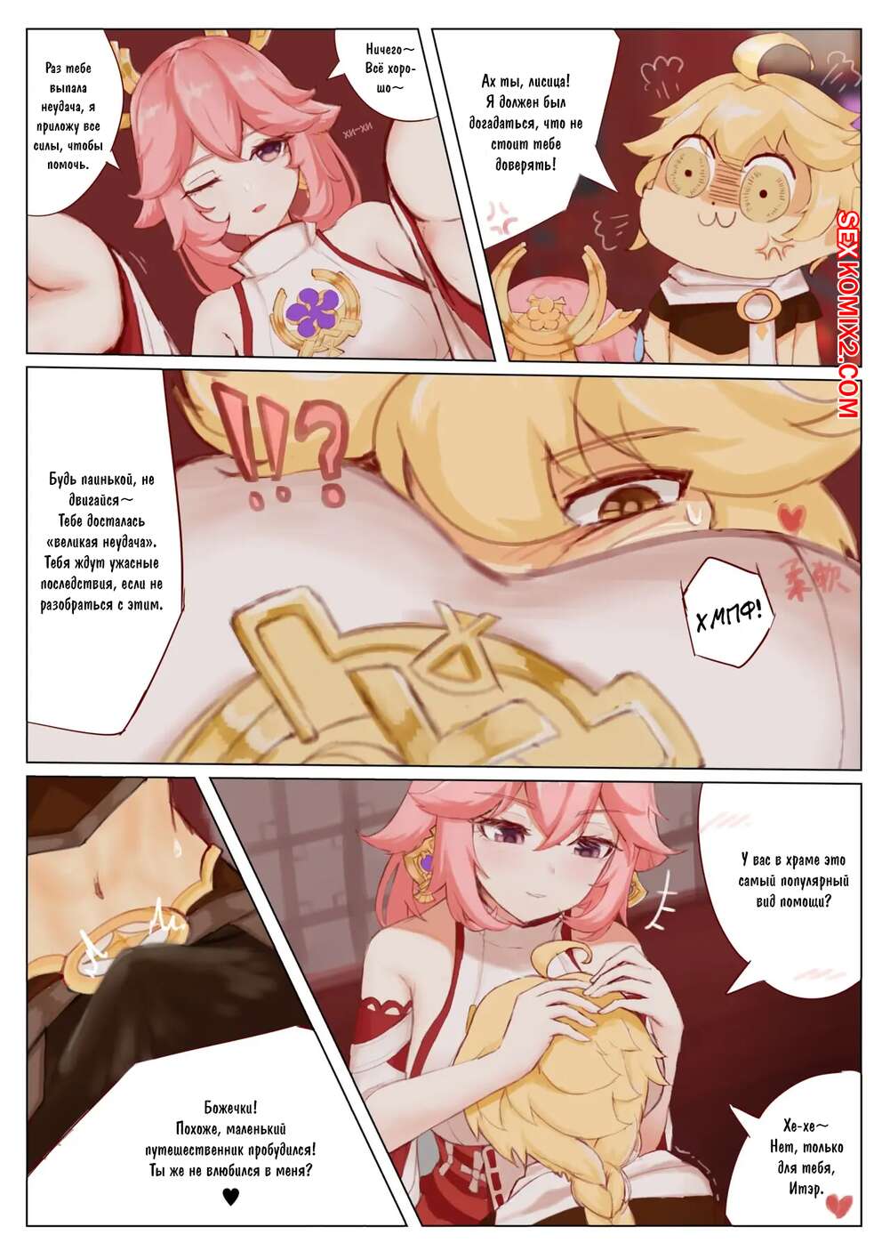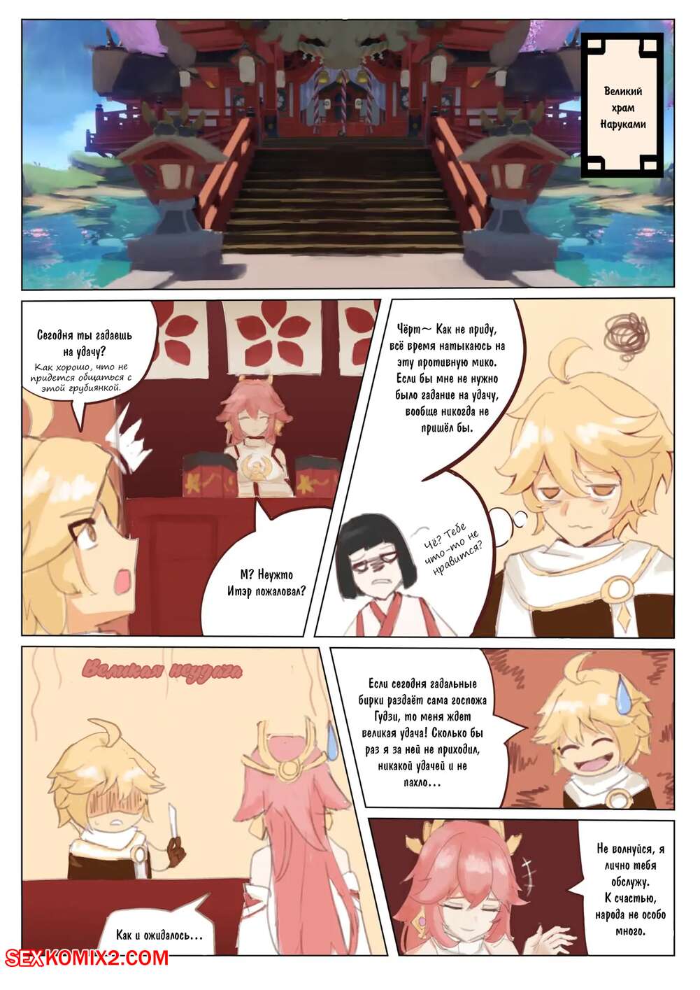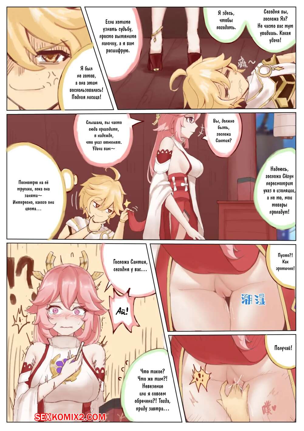 Порно комикс Genshin Impact. Особые услуги Яэ Мико. Ricky Сексуальная красотка была очень возбуждена и хотела трахаться, поэтому решила повеселиться со своим дружком. Девушка разделась и отсосала большой хуй парня, после чего дала ему себя выебать.