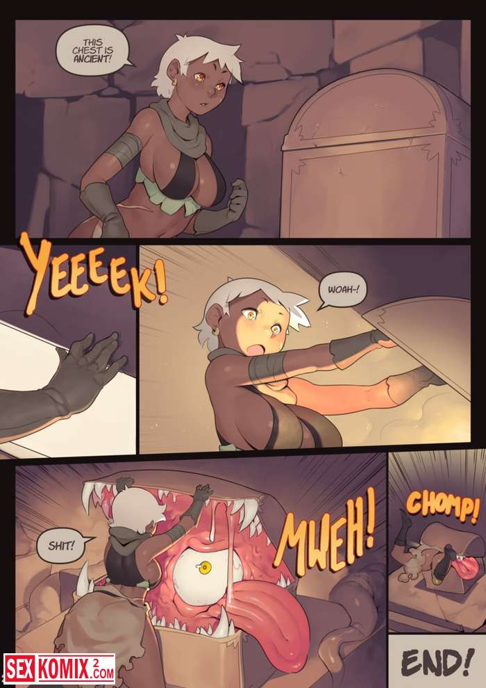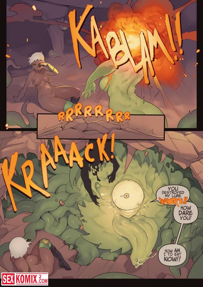 Порно комикс Добыча. Часть 2. Добыча сильней. Чернокожая красотка хоте укрыться в пещере, но на входе её схватил монстр и начал трахать своими щупальцами.